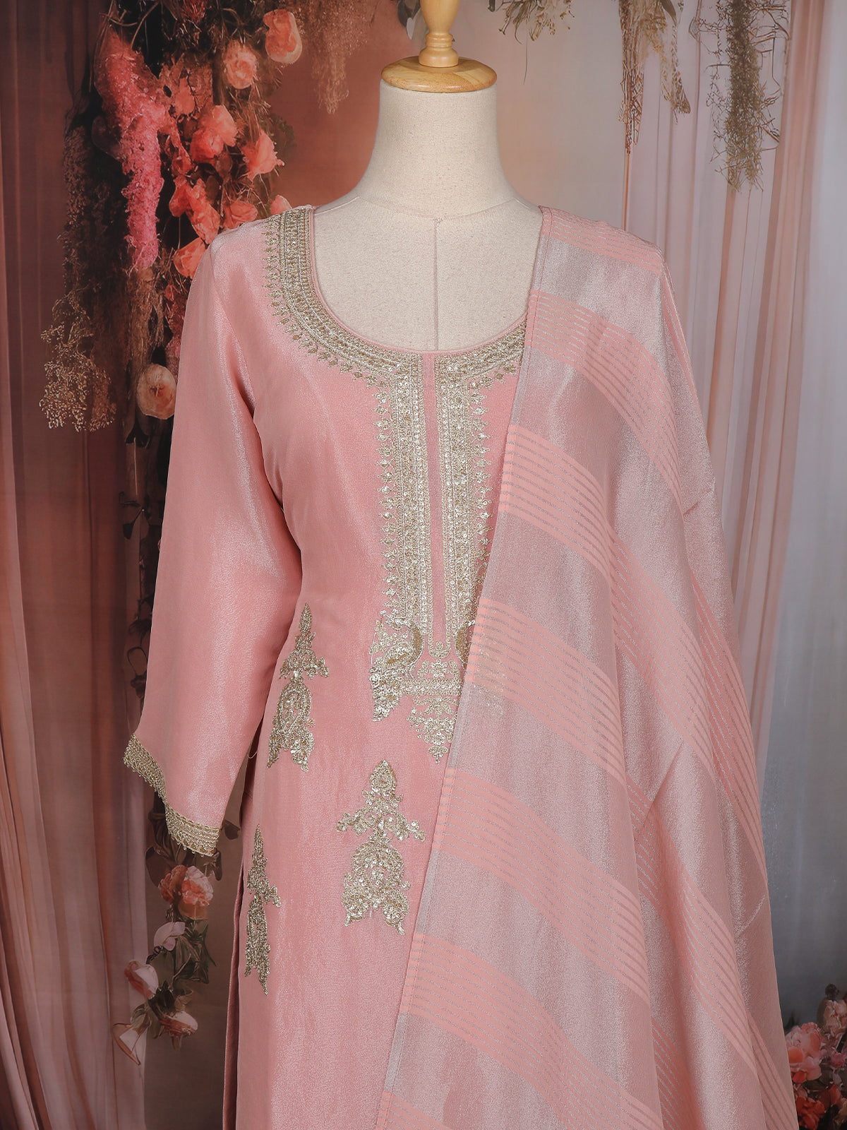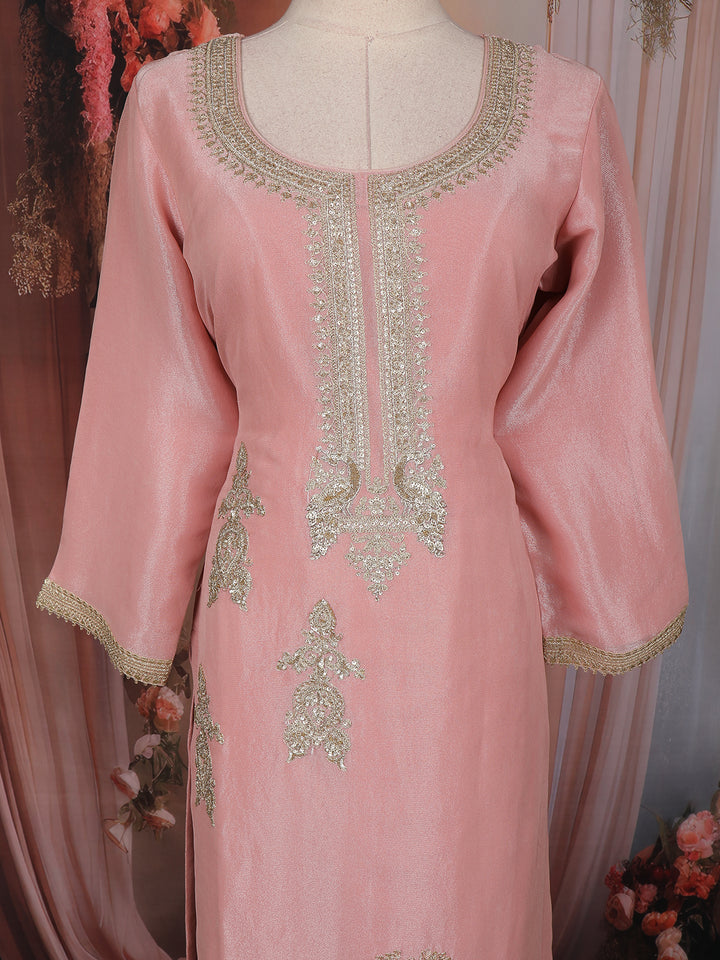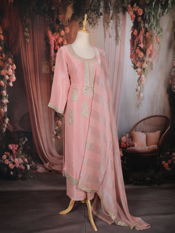 Blush Pink Zari Embroidered Design Tissue Silk Palazzo Suit with Dupatta