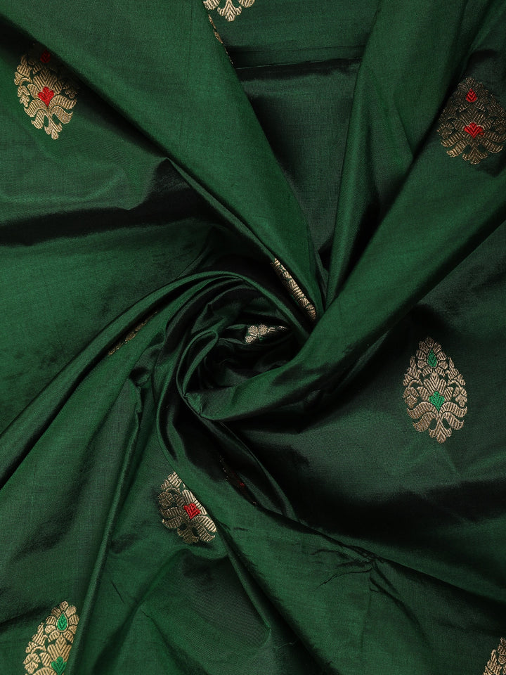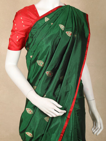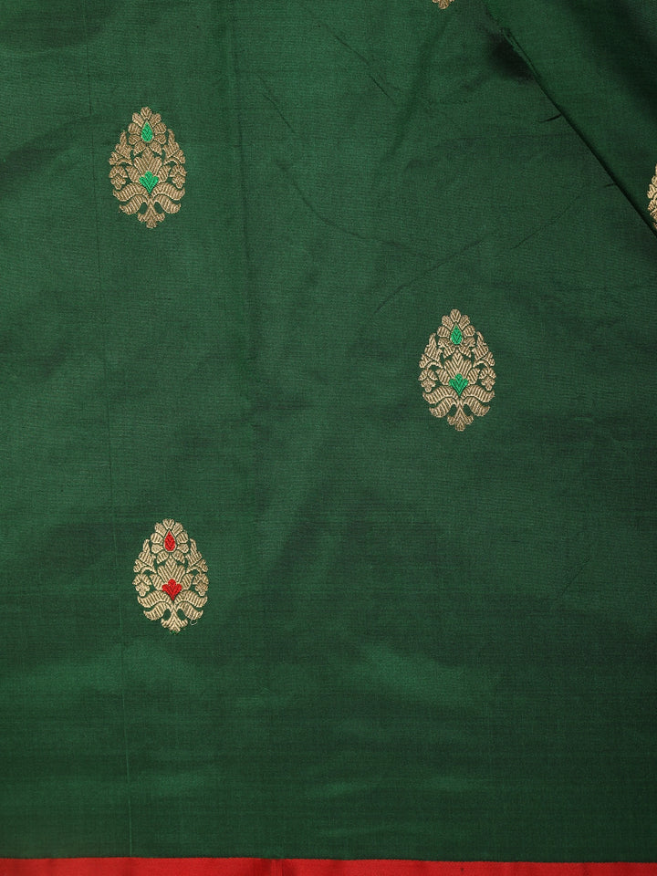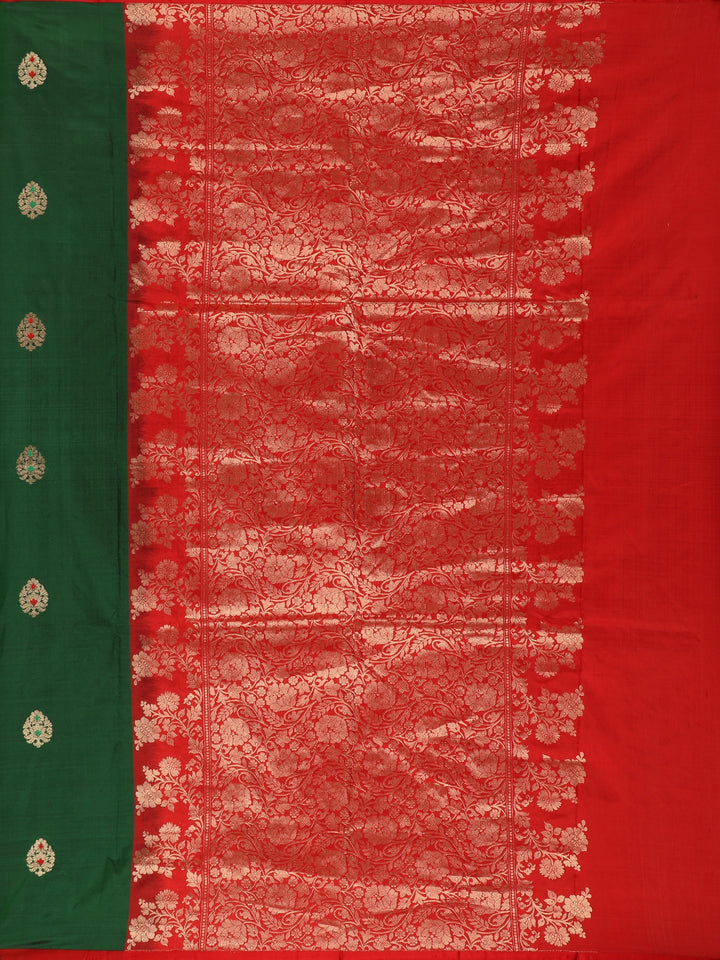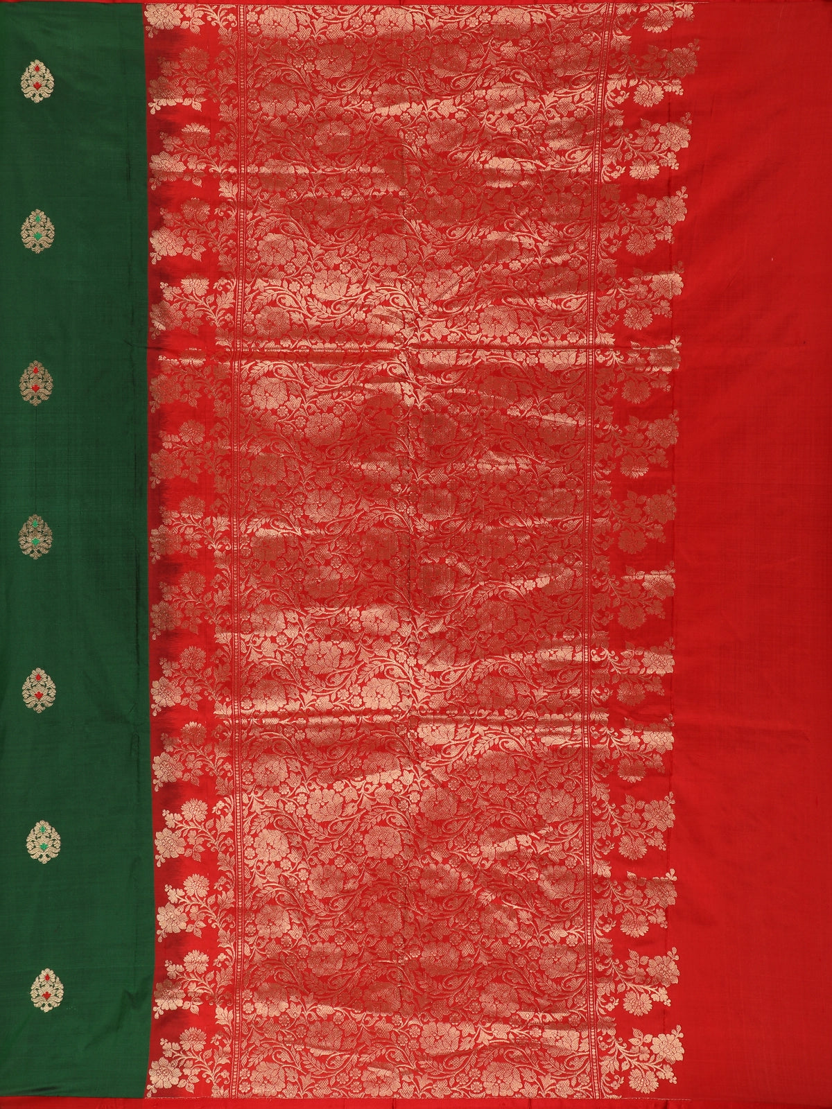 Bottle Green Butta Woven Design Pure Banarasi Saree with Contrast Red Border