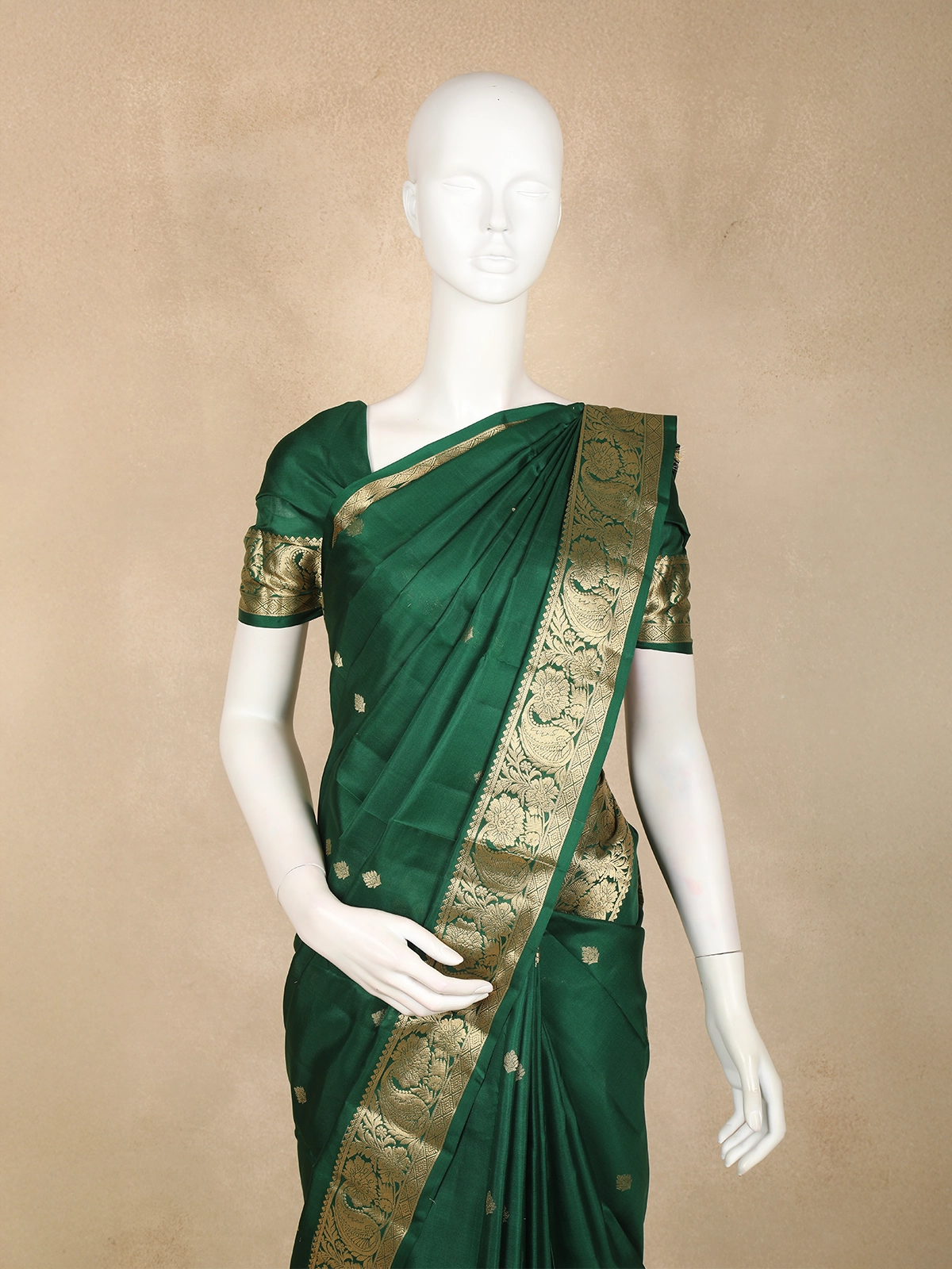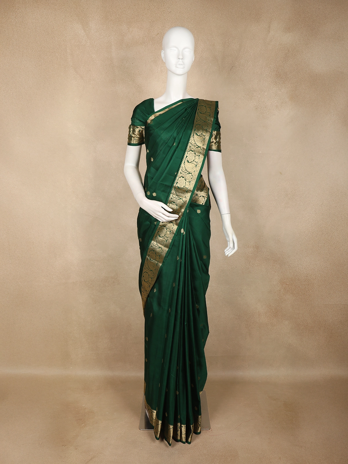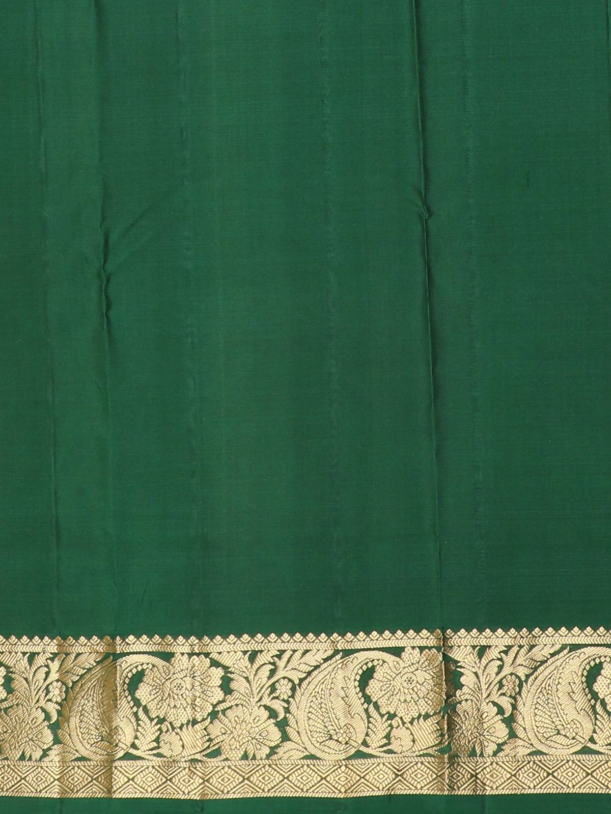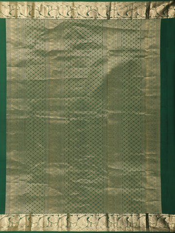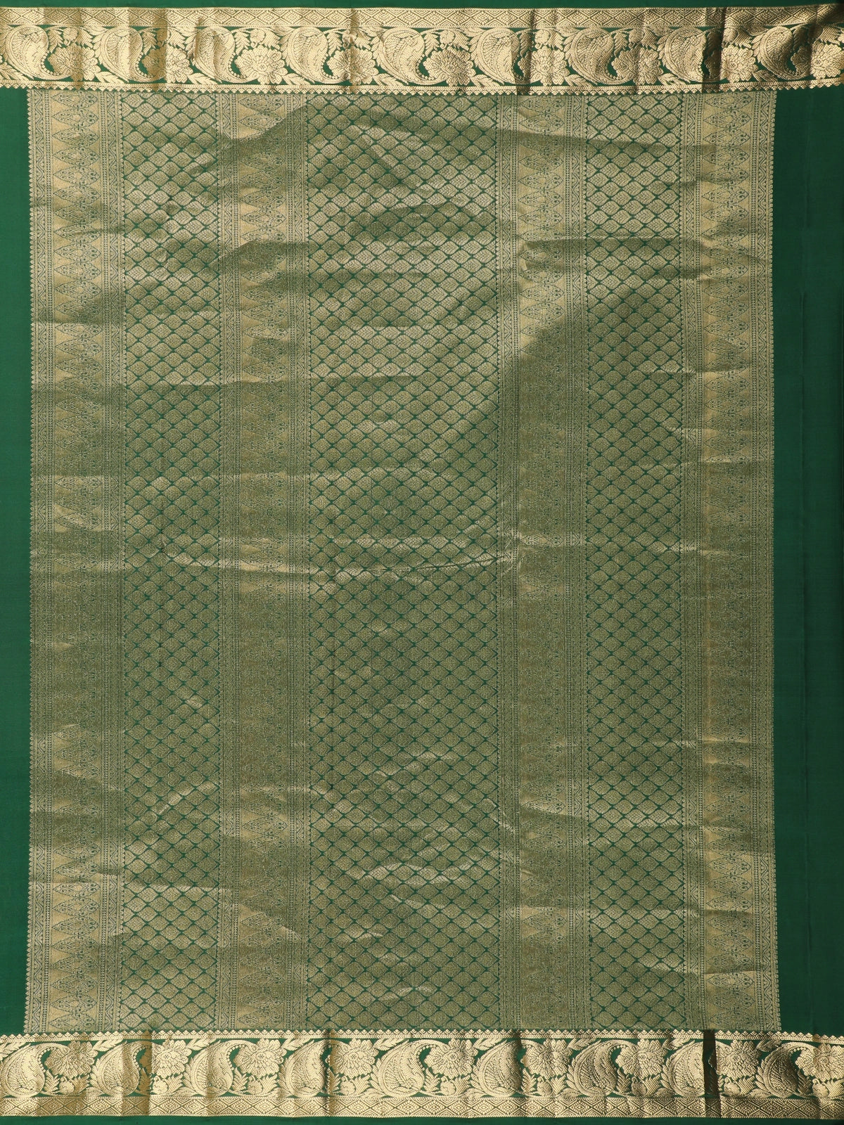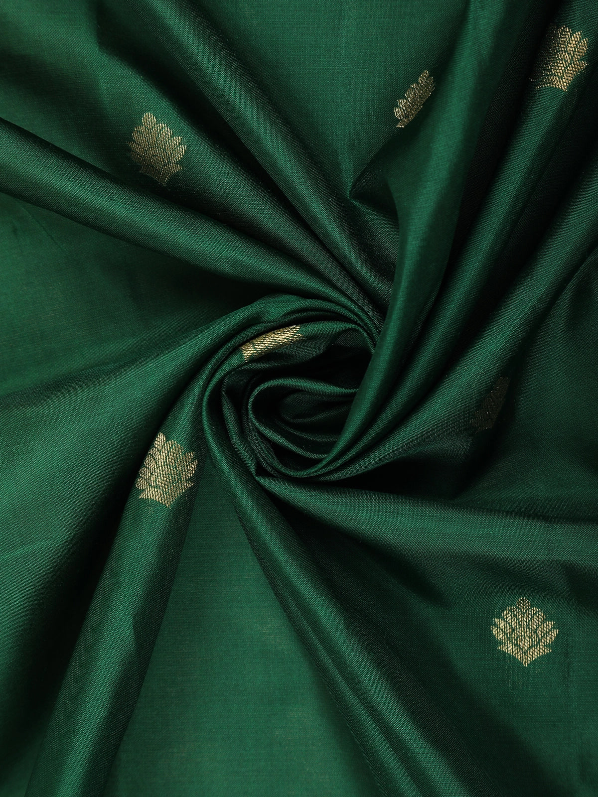 Bottle Green Butta Woven Design Pure Kanchipuram Silk Saree with Contrast Gold Zari Border