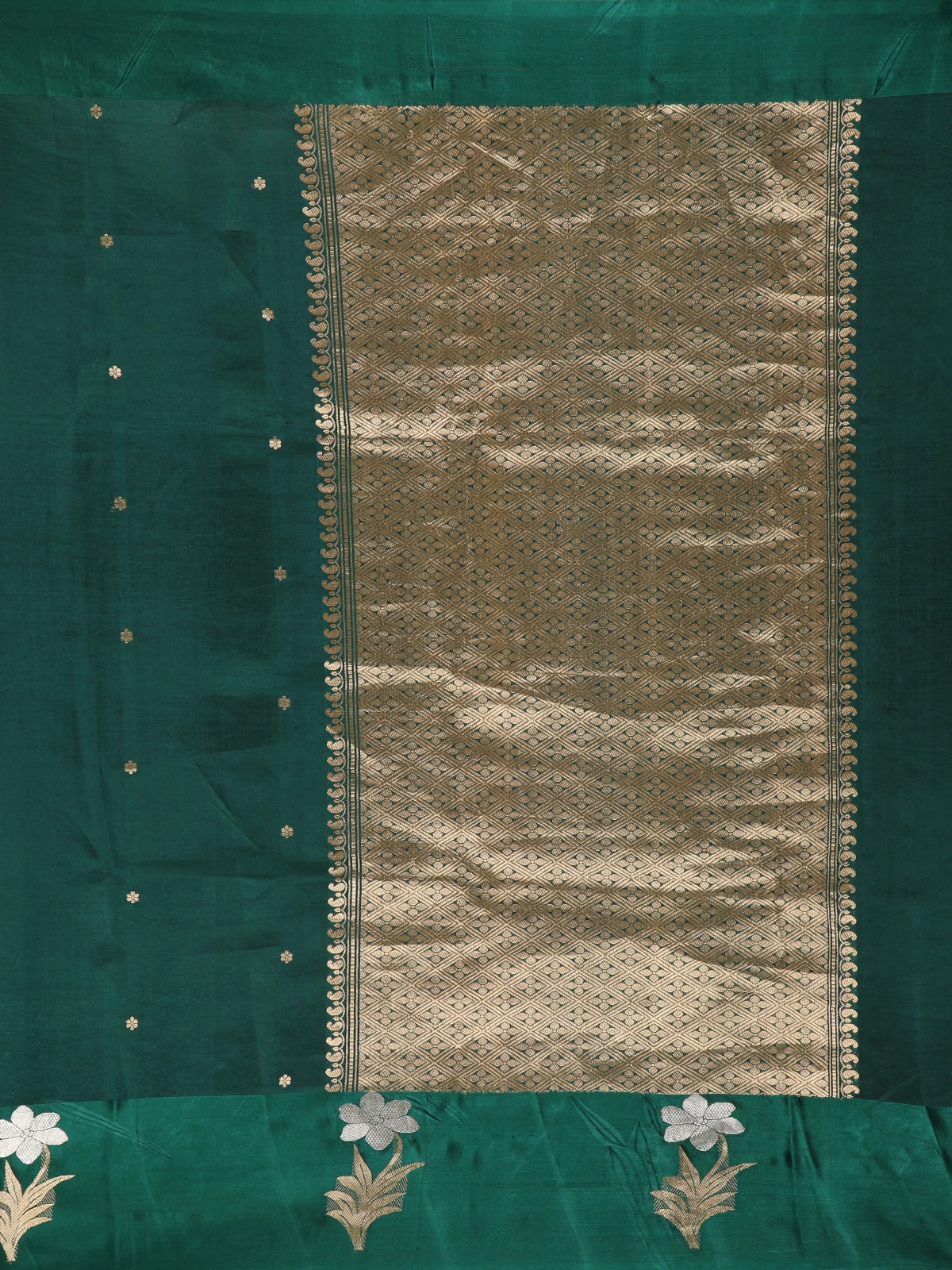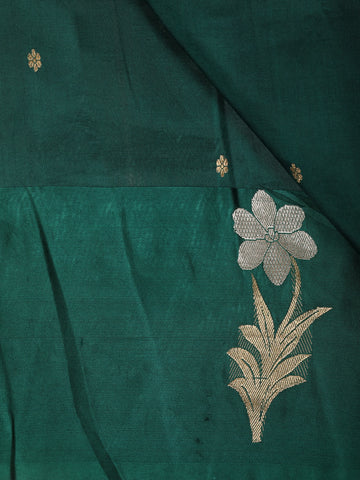 Bottle Green Butta Zari Woven Design Pure Banarasi Silk Saree with Designer Border
