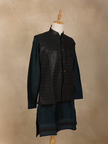 Bottle Green Embroidered Design Semi Silk Kurta Set