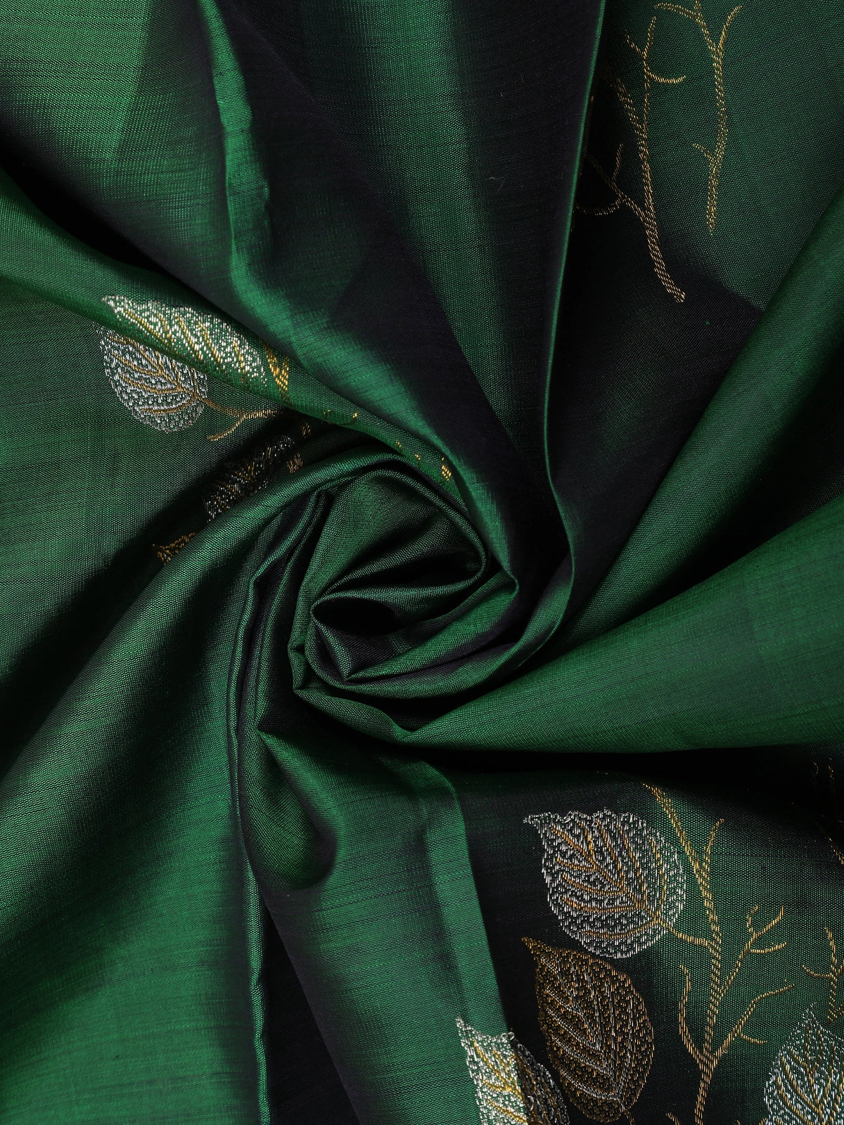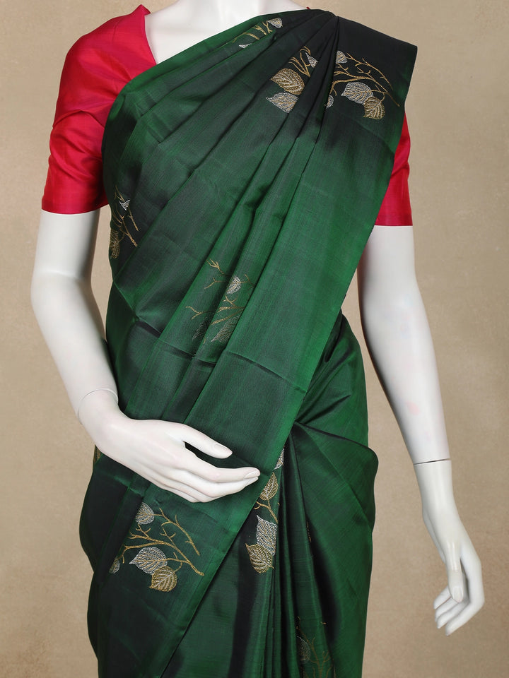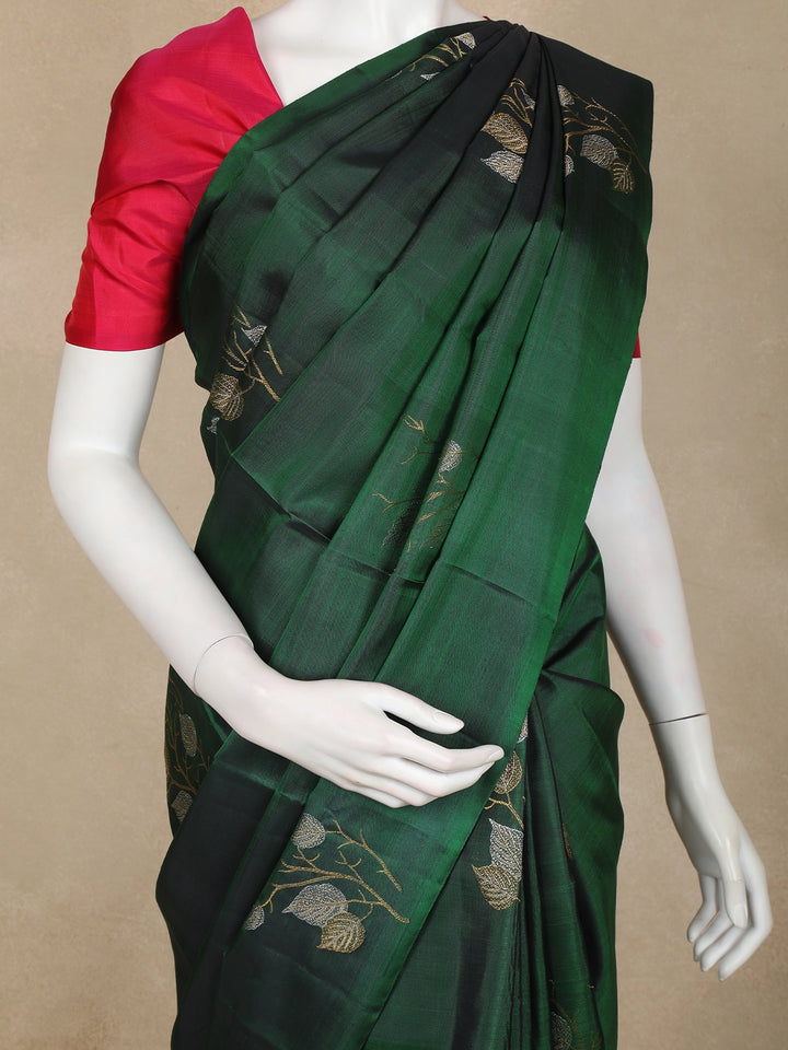 Bottle Green Floral Design Kanchipuram Silk Saree