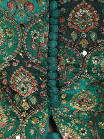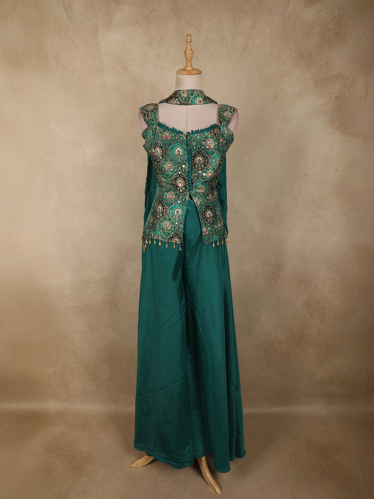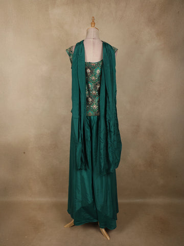 Bottle Green Floral Embroidered Design Silk Palazzo Suit with Dupatta