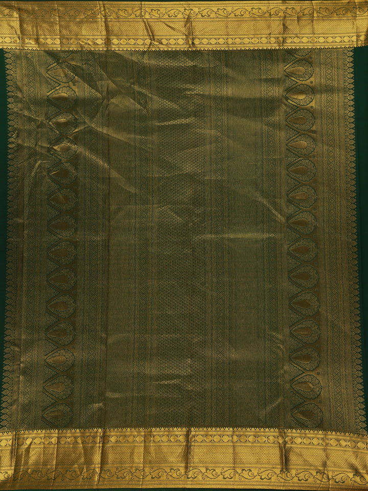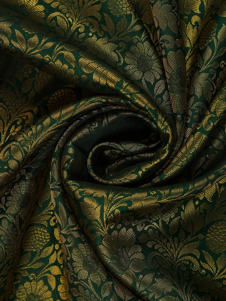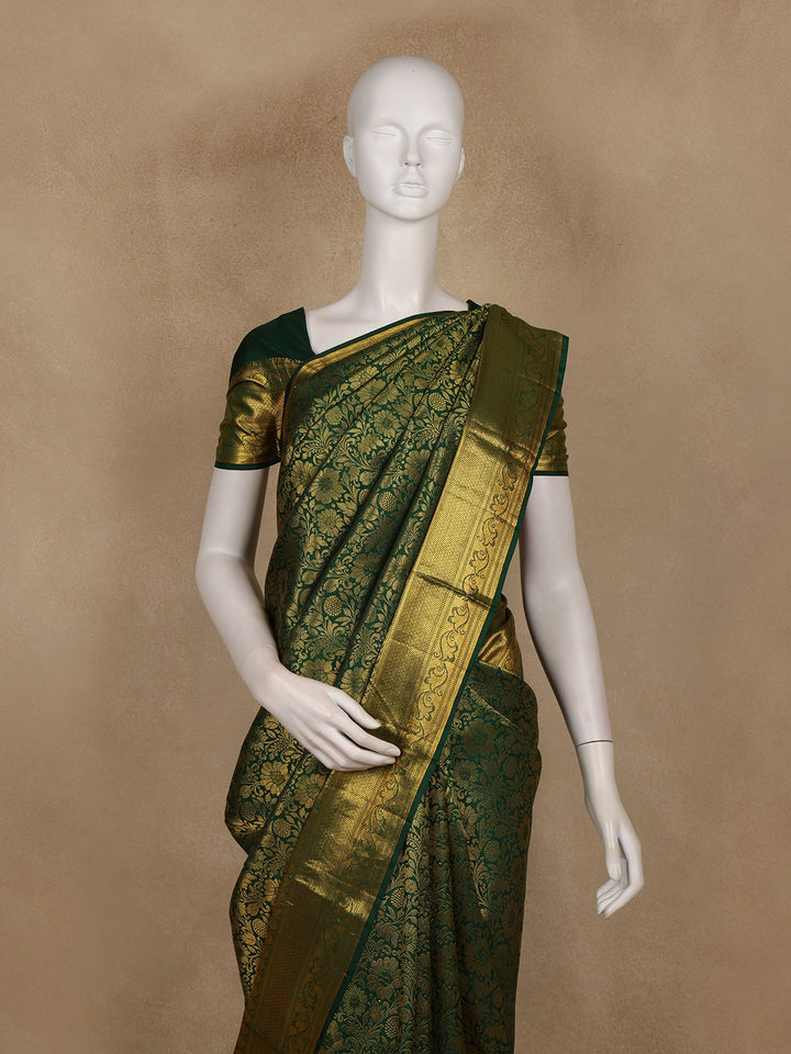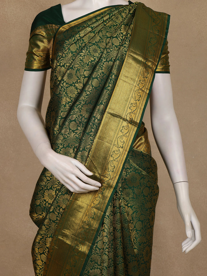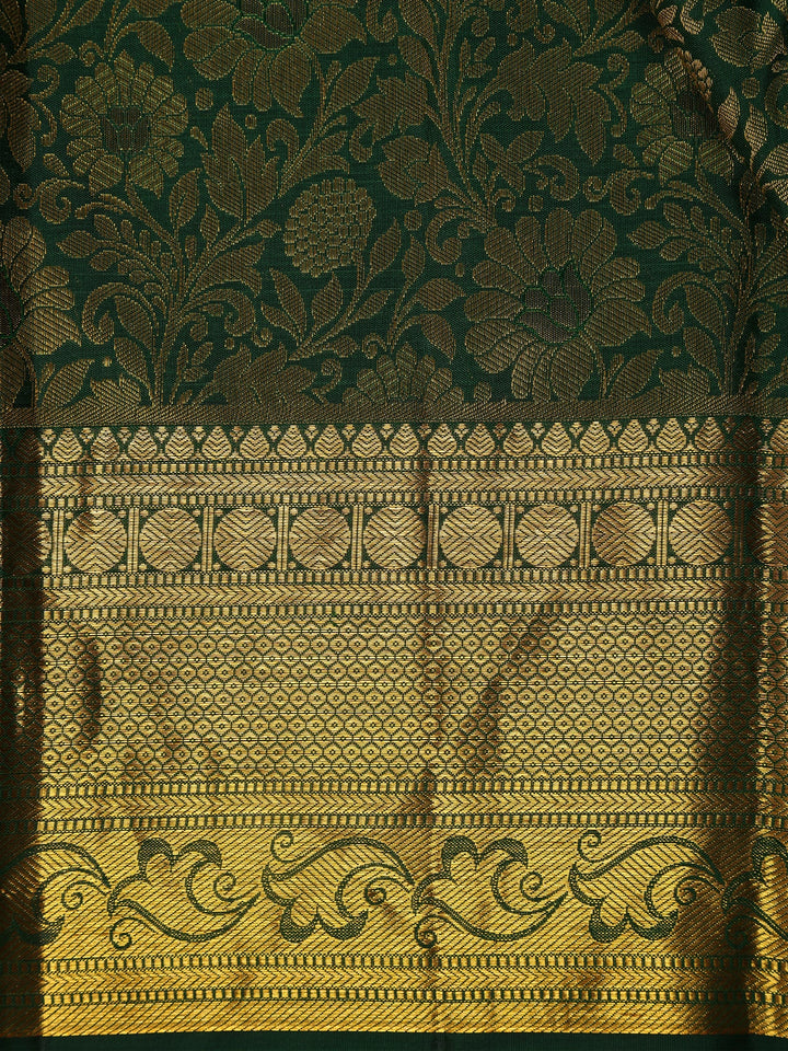 Bottle Green Floral Woven Pure Kanchipuram Silk Saree
