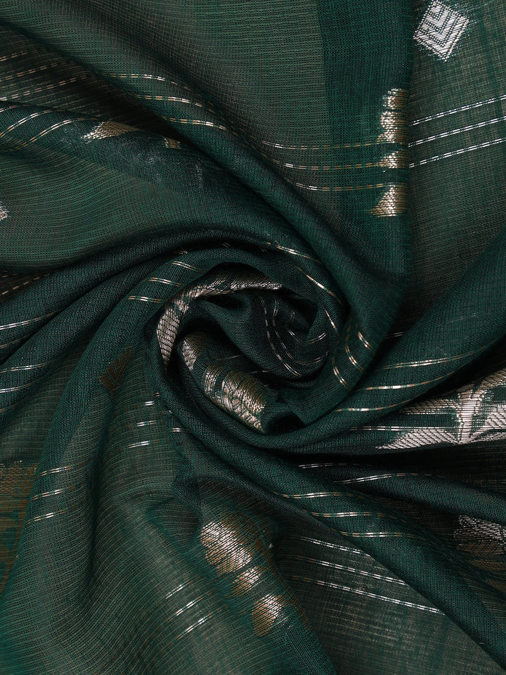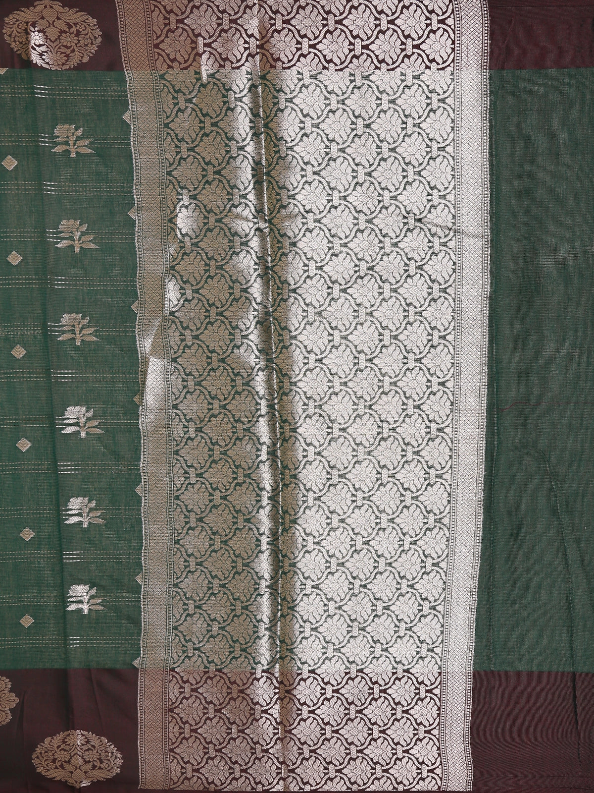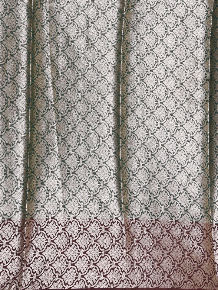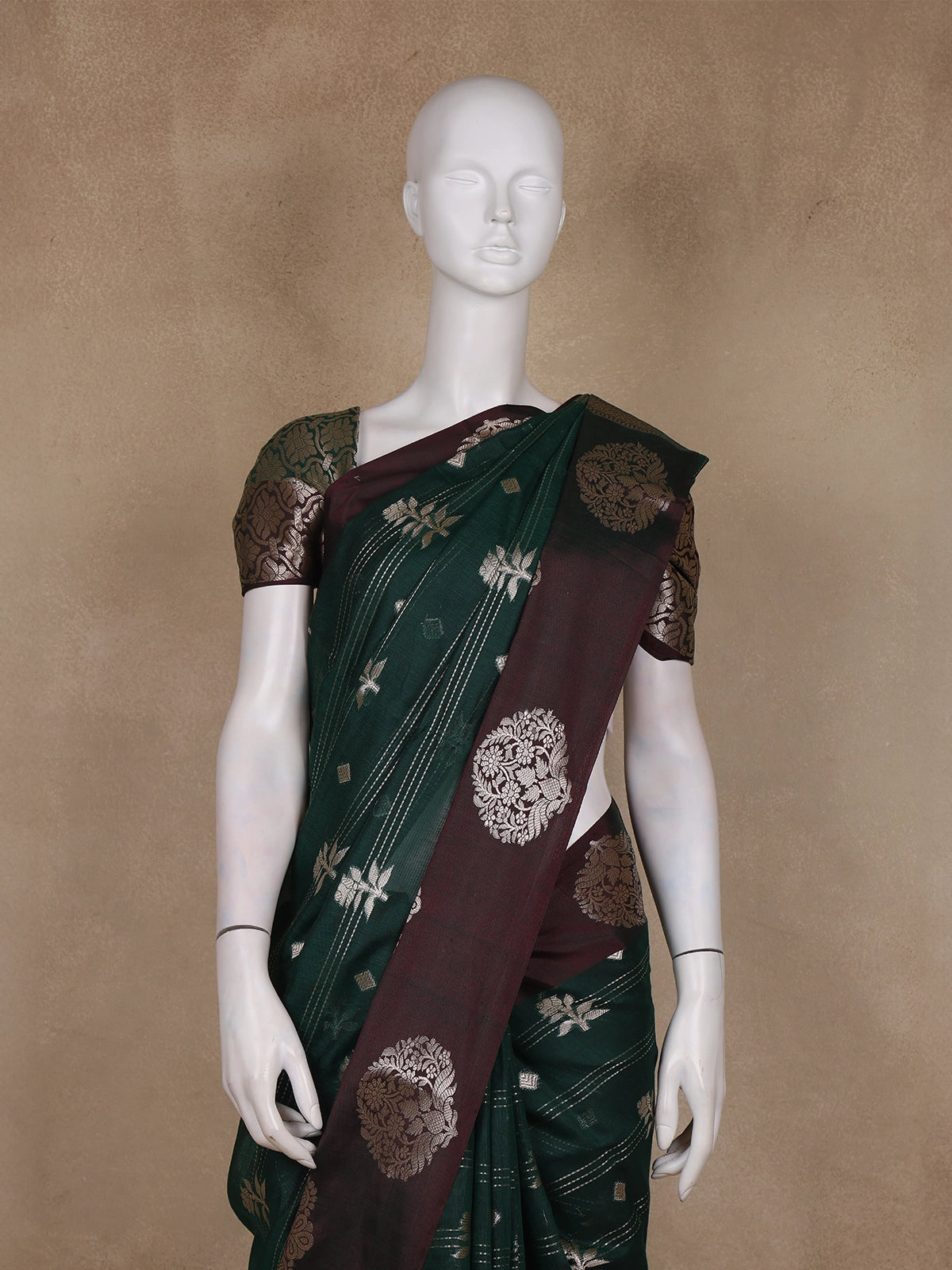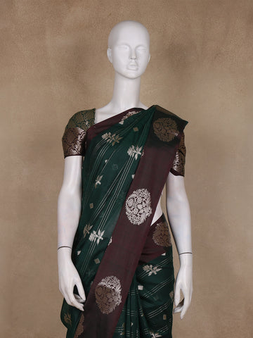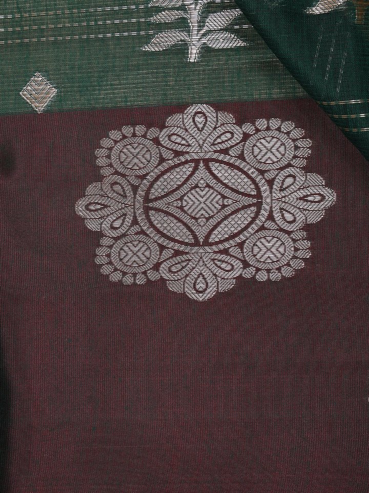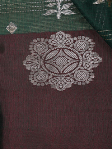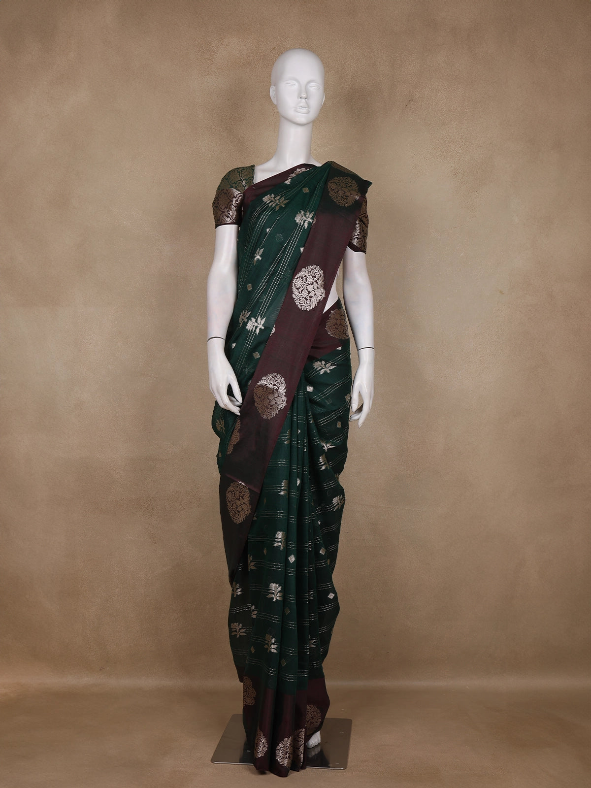 Bottle Green Floral Zari Woven Design Tussar Saree with Contrast Maroon Border