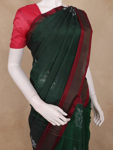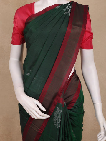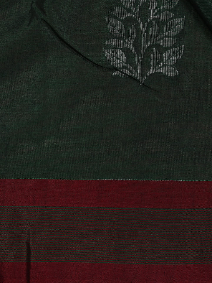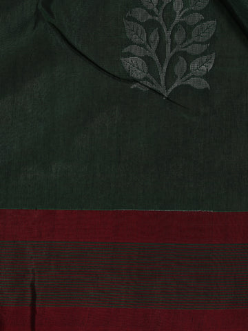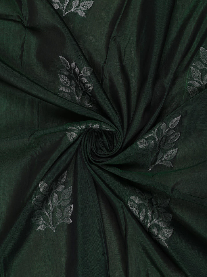 Bottle Green Leaf Butta Woven Kanchipuram Silk Saree