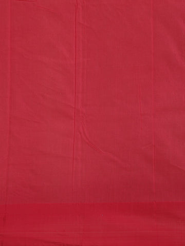 The saree is beautifully complemented by a contrast pink blouse and pallu, lending a striking yet harmonious balance of colors. The broad zari border in maroon and gold adds a royal finish, highlighting the saree’s luxurious craftsmanship and traditional finesse.