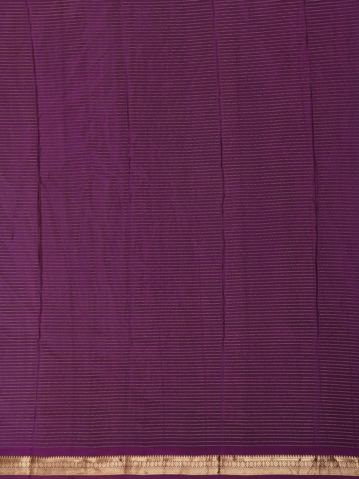 Handwoven from pure mulberry silk, this saree reflects the time-honored craftsmanship of Kanchipuram artisans, celebrated for producing silk that is lustrous, durable, and rich in texture. The contrast zari border adds depth and grandeur, while the coordinated purple pallu reveals intricate zari workmanship, enhancing the overall elegance.