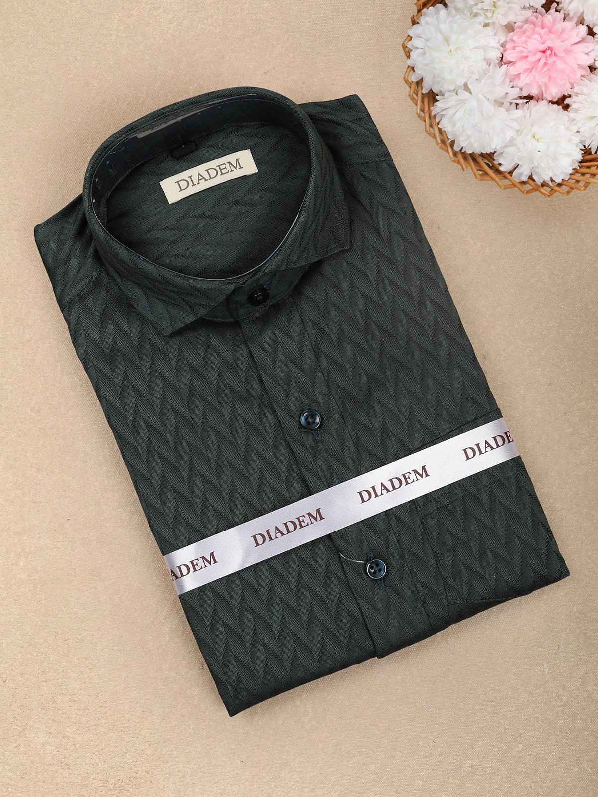 Bottle Green Self-Textured Design Full Sleeve Cotton Kid's Shirt