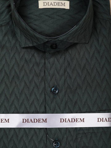 Elevate your everyday and festive wardrobe with this Bottle Green men’s shirt , crafted in premium cotton fabric for all-day comfort. Featuring a subtle self-textured chevron pattern, this shirt offers a refined look that balances elegance with modern minimalism. The rich green tone adds depth and versatility, making it suitable for casual outings, festive gatherings