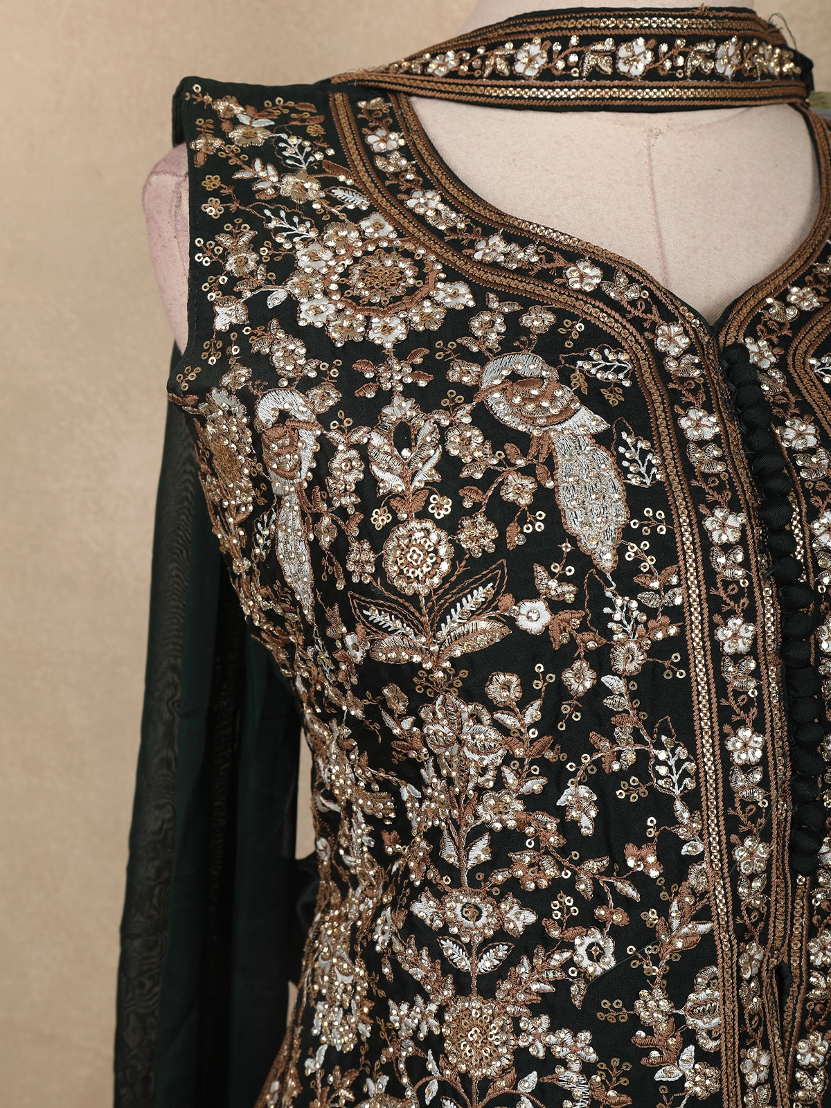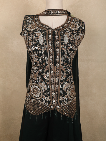 Bottle Green Sequins and Beads Embroidered Design Georgette Palazzo Suit