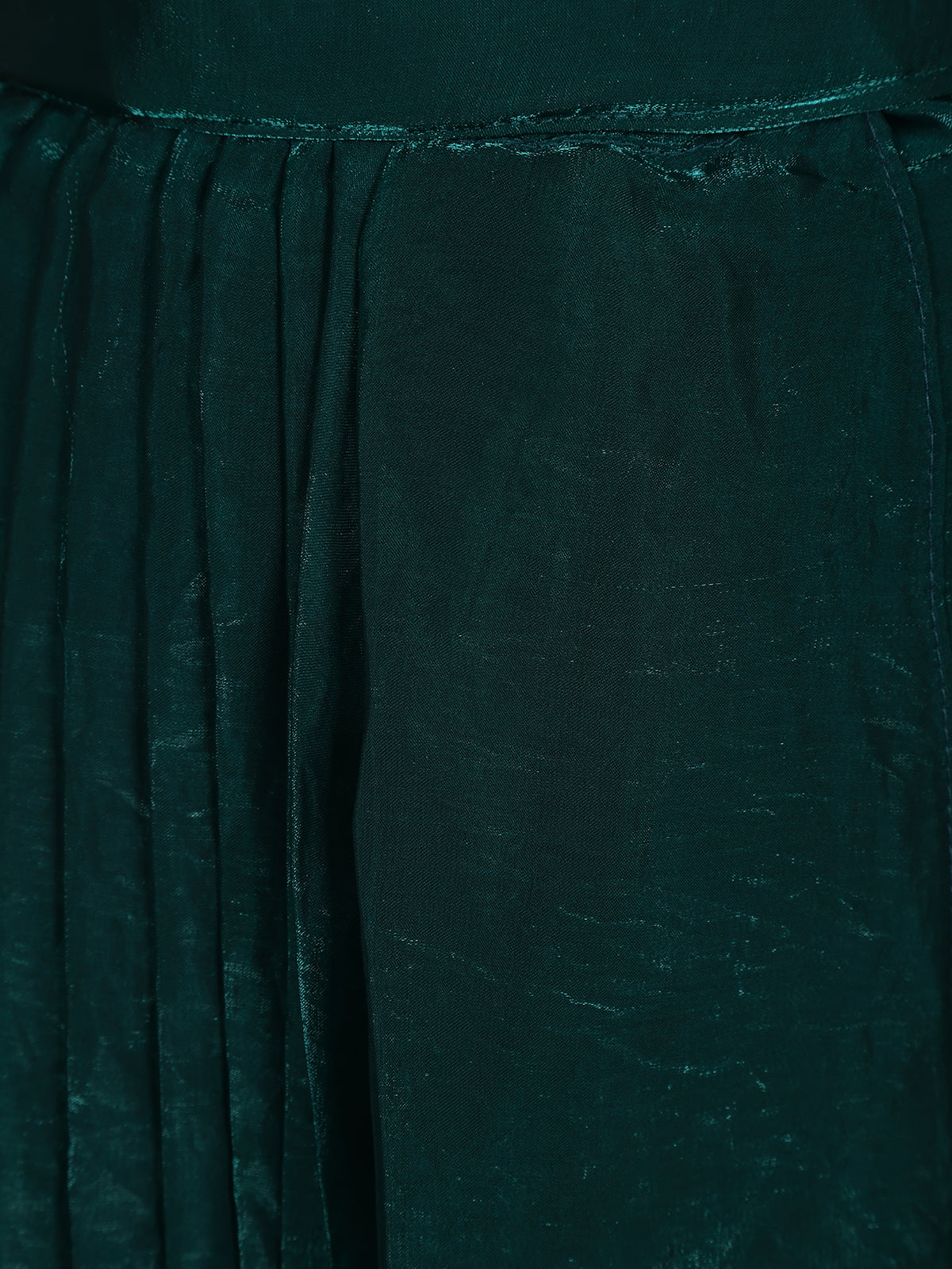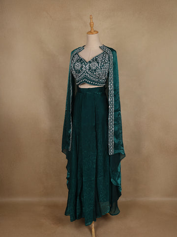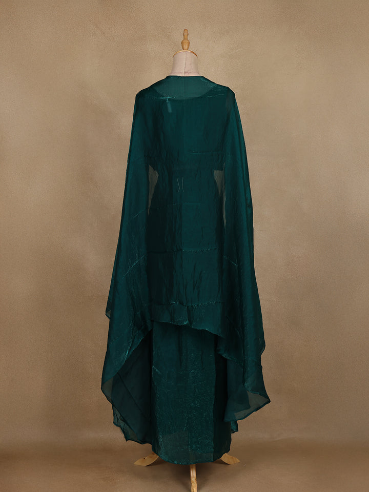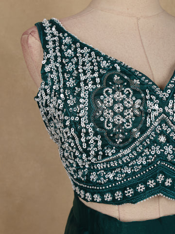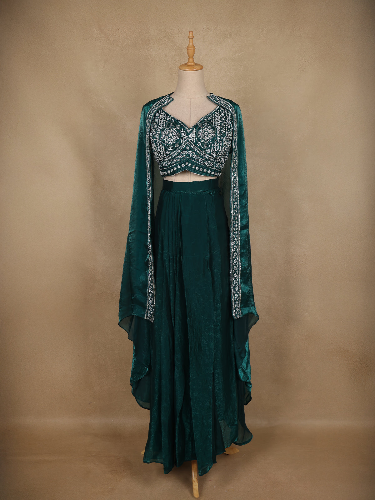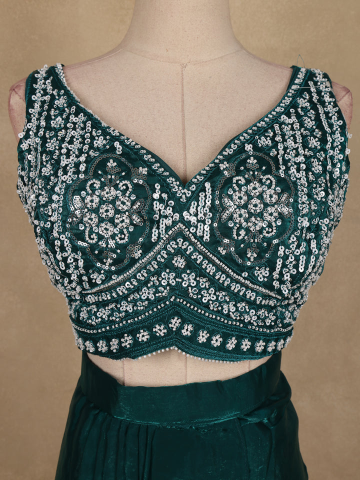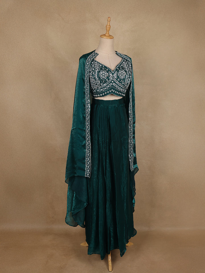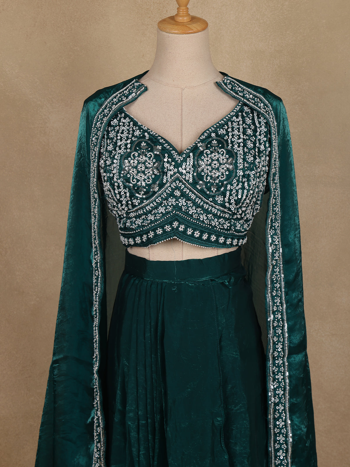 Bottle Green Sequins Design Space Silk Skirt Top with Dupatta