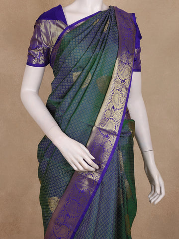 Bottle Green Small Butta Woven Kanchipuram Silk Saree