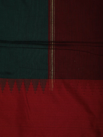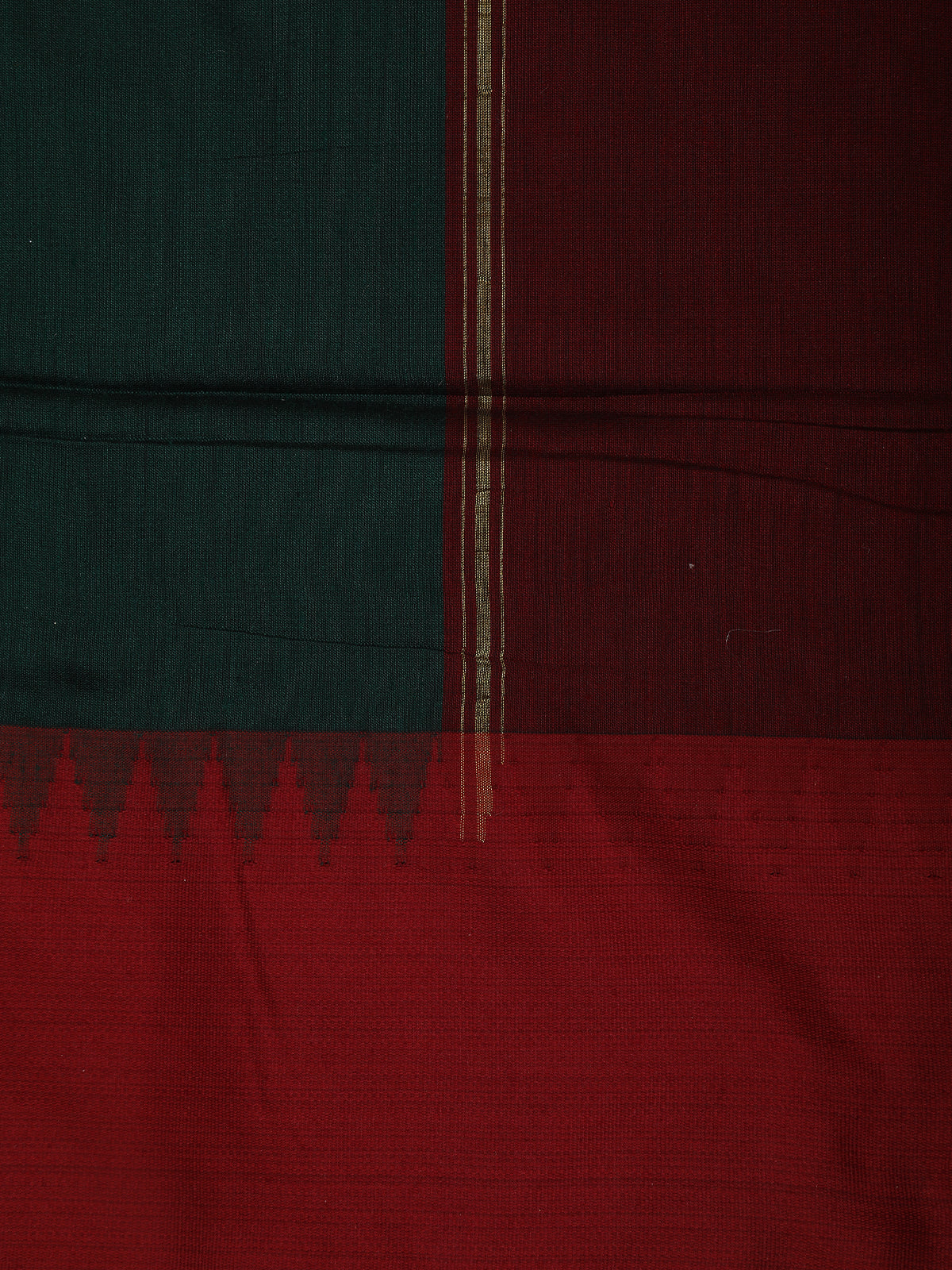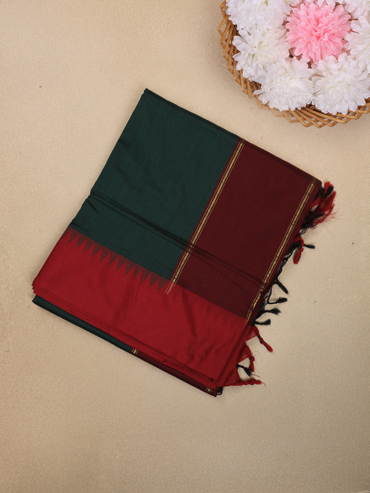 Bottle Green Solid Design Kalyani Cotton Saree with Contrast Temple Border