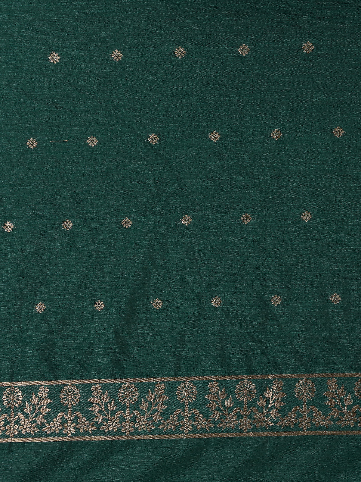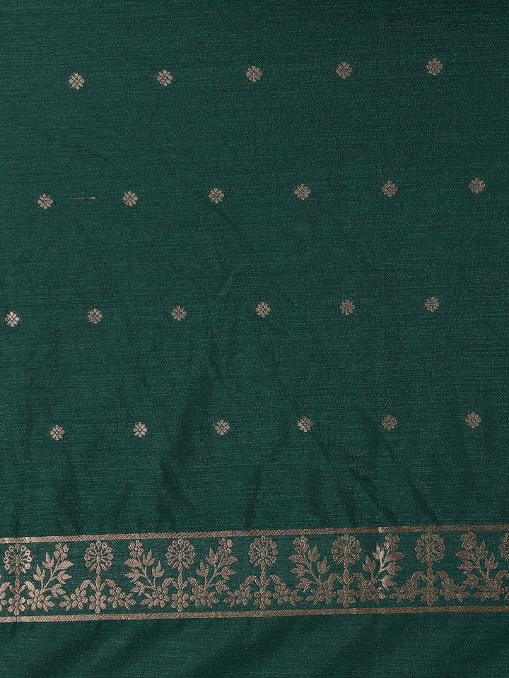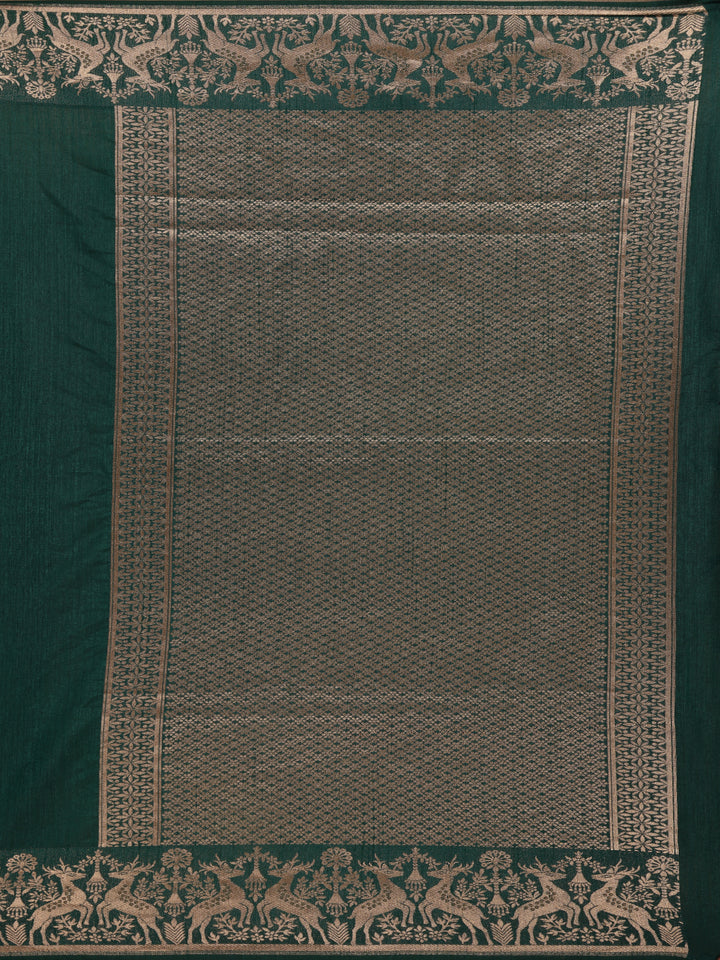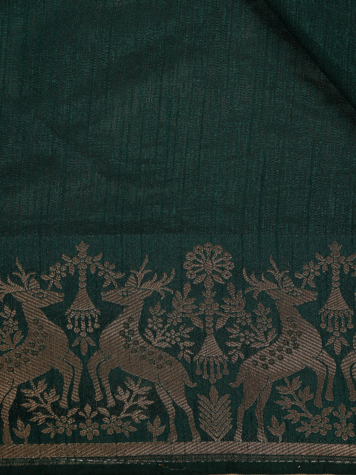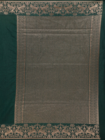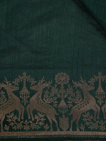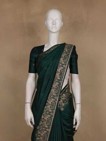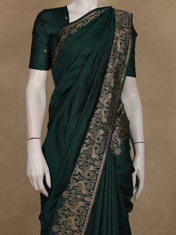Bottle Green Solid Design Raw Silk Saree with Zari Border