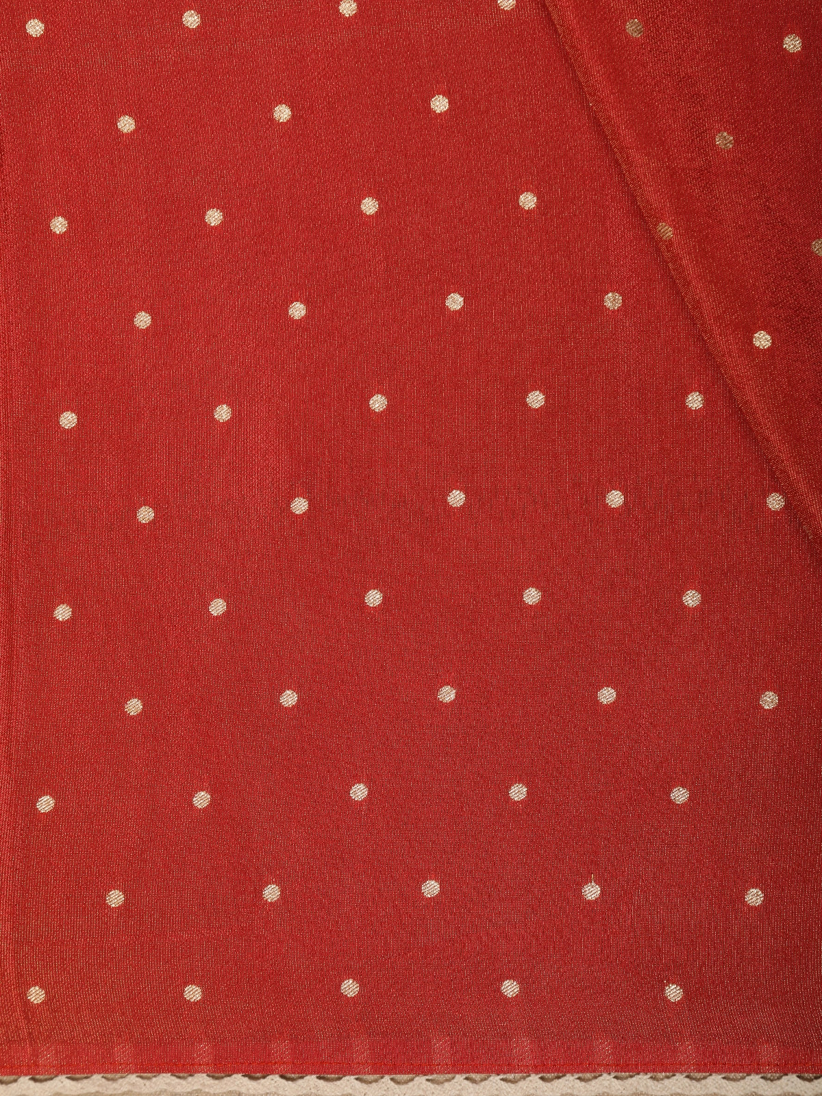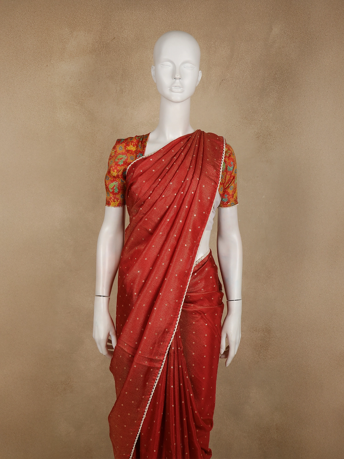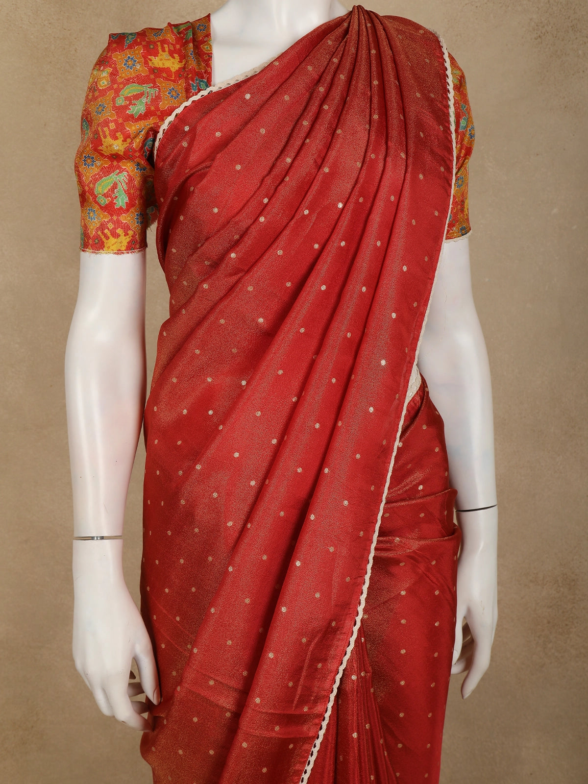 Brick Red Butta Woven Design Soft Tissue Saree with Scalloped Border