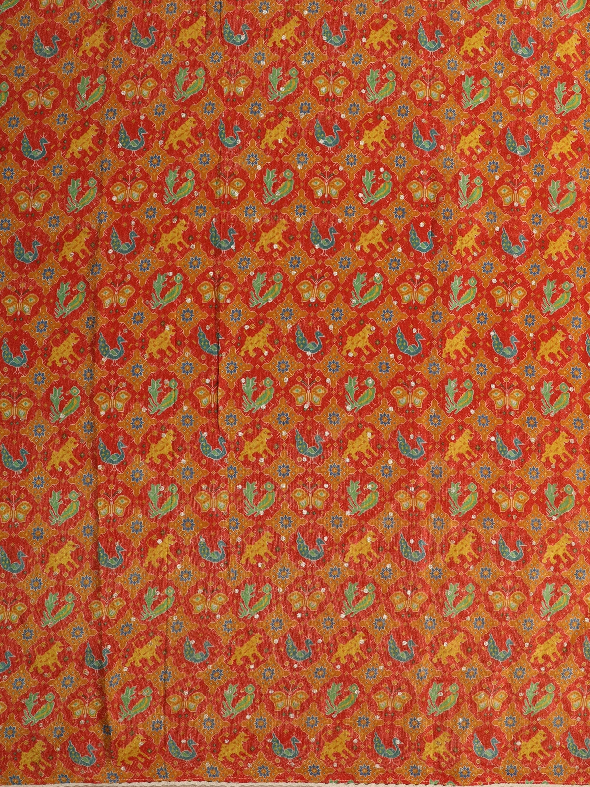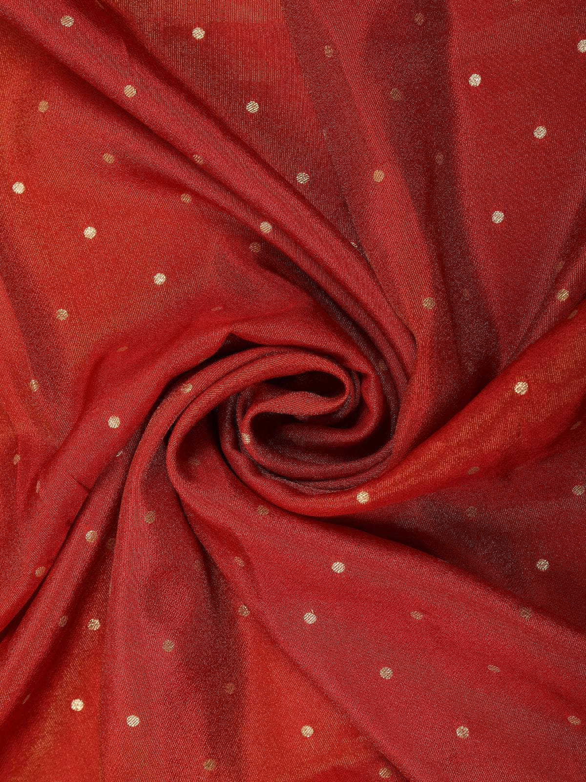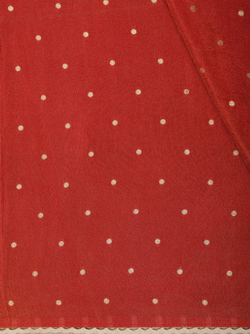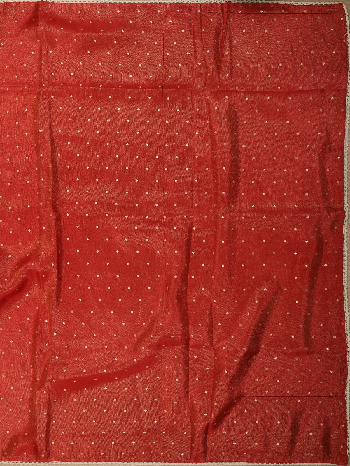 Brick Red Butta Woven Design Soft Tissue Saree with Scalloped Border