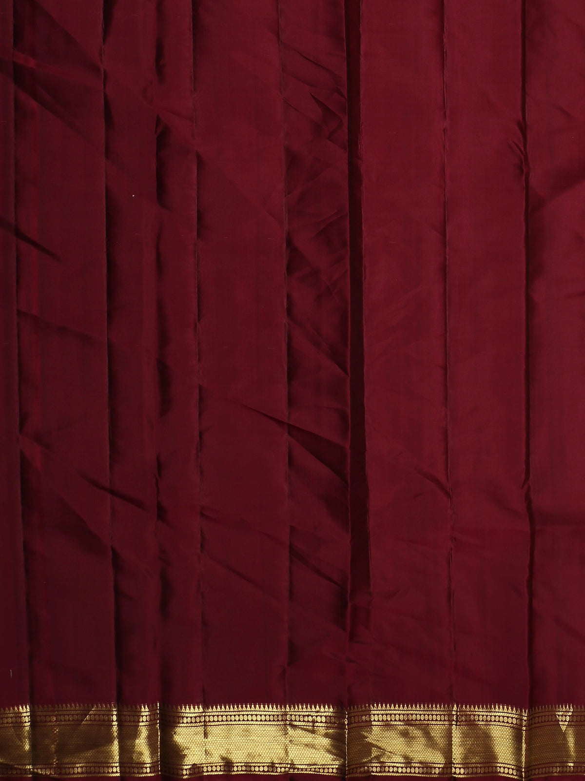 The saree is complemented by a richly woven pallu and contrast blouse, both adorned with traditional zari detailing that completes the ensemble with elegance.
