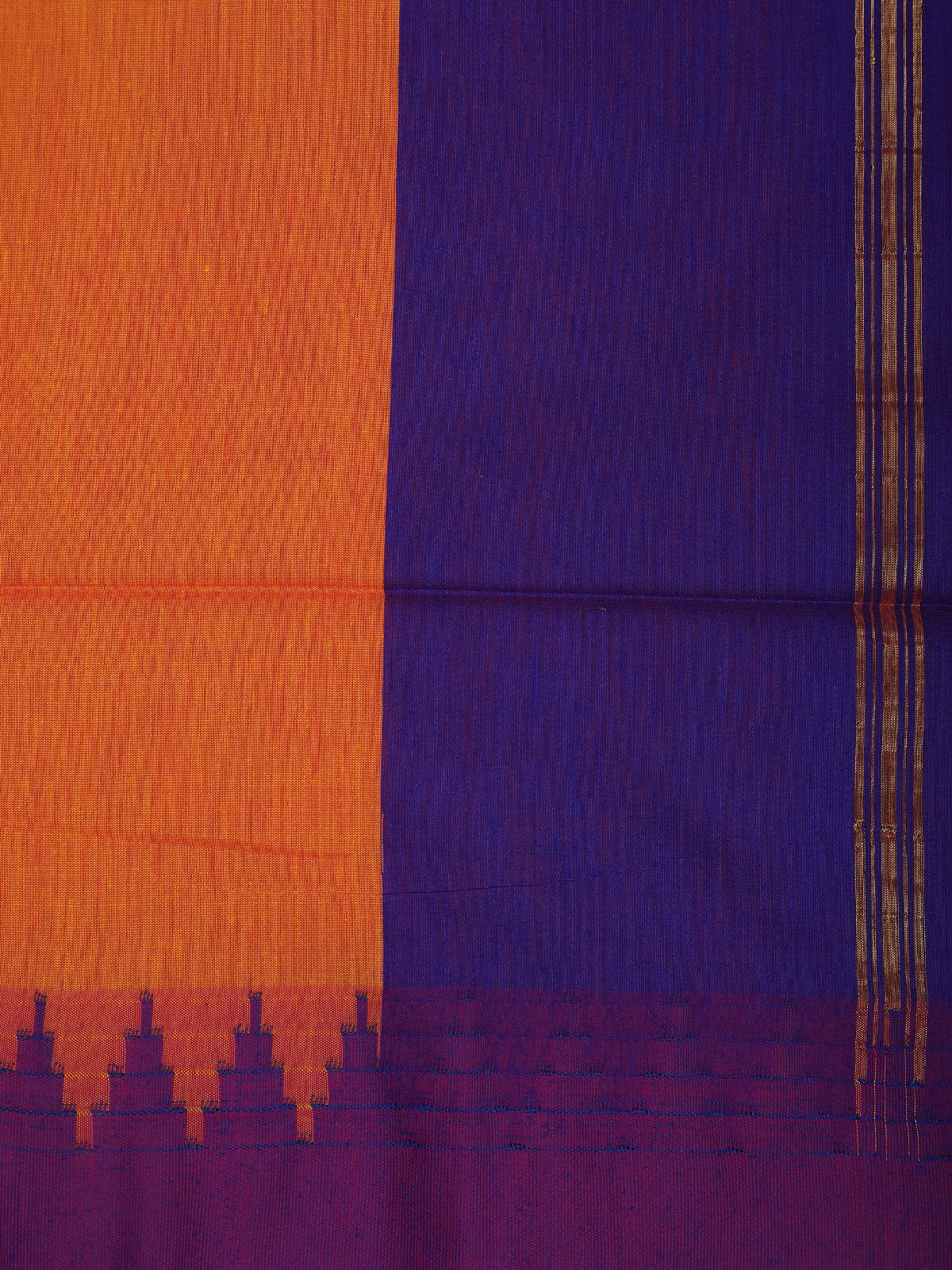 Bright Orange Solid Design Kalyani Cotton Saree with Contrast Temple Border