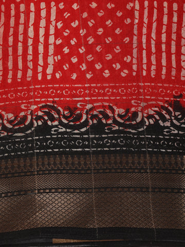 Bright Red Abstract Printed Design Mixed Cotton Fancy Saree with Zari Border