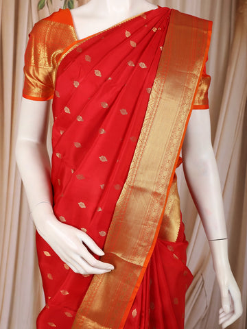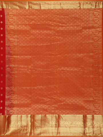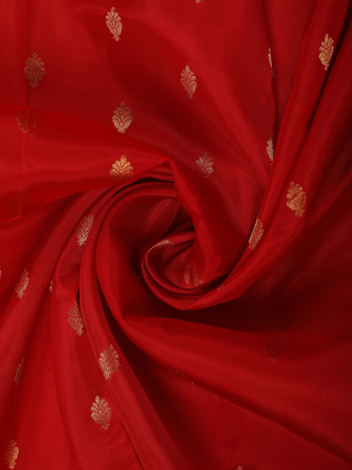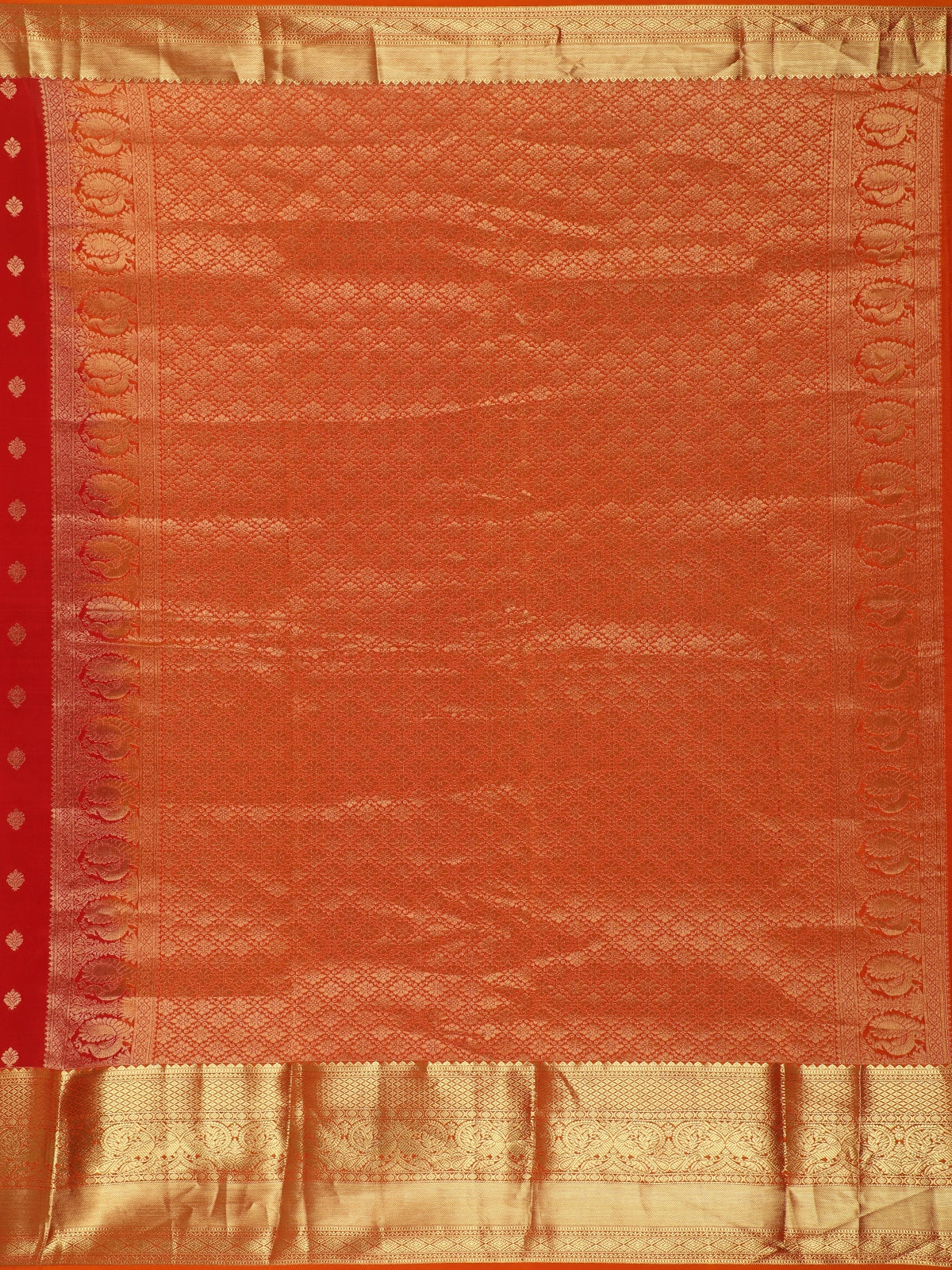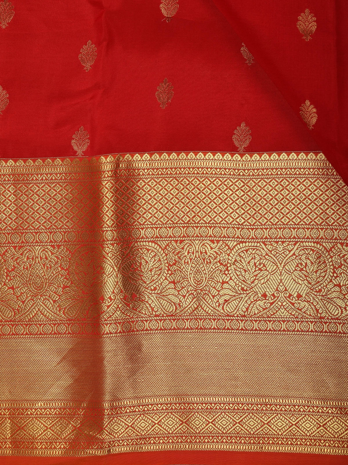 Bright Red Butta Butta Woven Design Pure Kanchipuram Silk Saree with Contrast Border