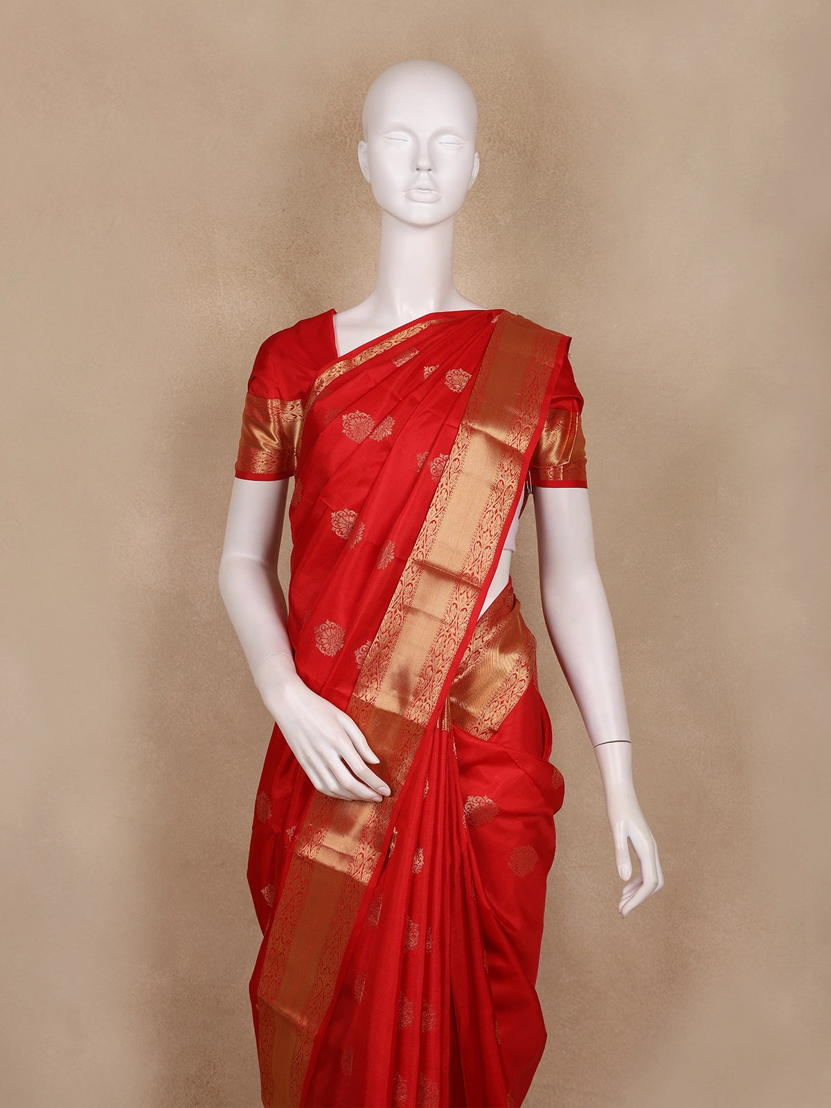 Bright Red Butta Woven Pure Kanchipuram Silk Saree