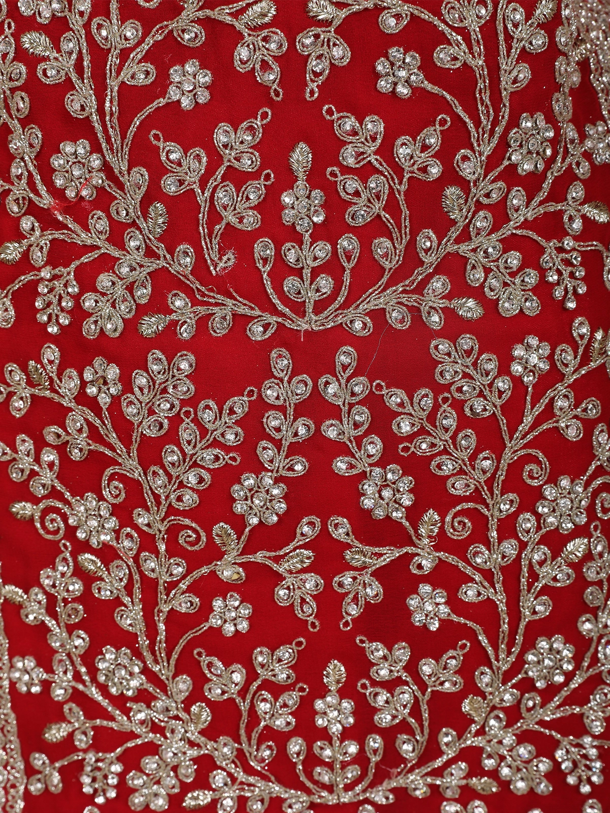 Elevate your festive wardrobe with this stunning Bright Red Georgette Palazzo Suit, a perfect blend of elegance and intricate craftsmanship. The rich wine-purple base is beautifully enhanced with delicate floral embroidery, meticulously crafted using fine silver-toned threads and shimmering sequins that add a refined sparkle.
