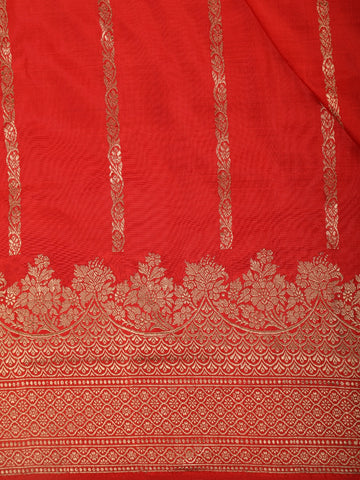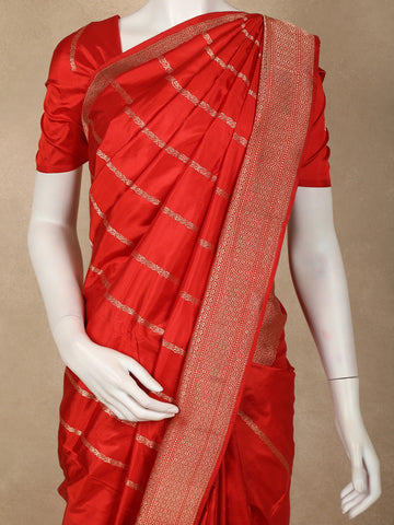 Bright Red Striped Woven Design Pure Banarasi Saree