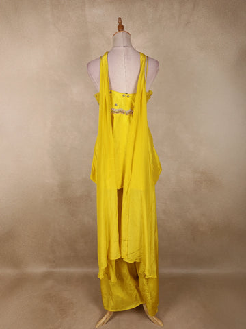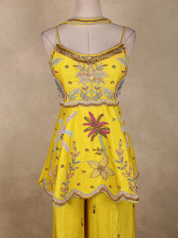 Bright Sunshine Yellow Floral Sequins and Beads Embroidered Design Crepe Palazzo Suit