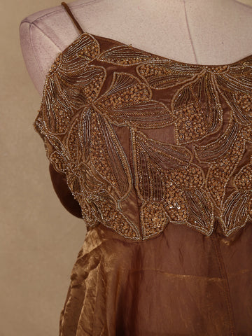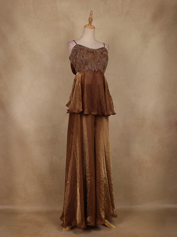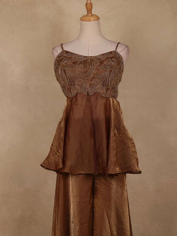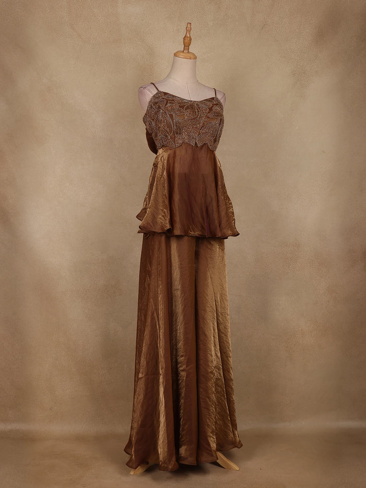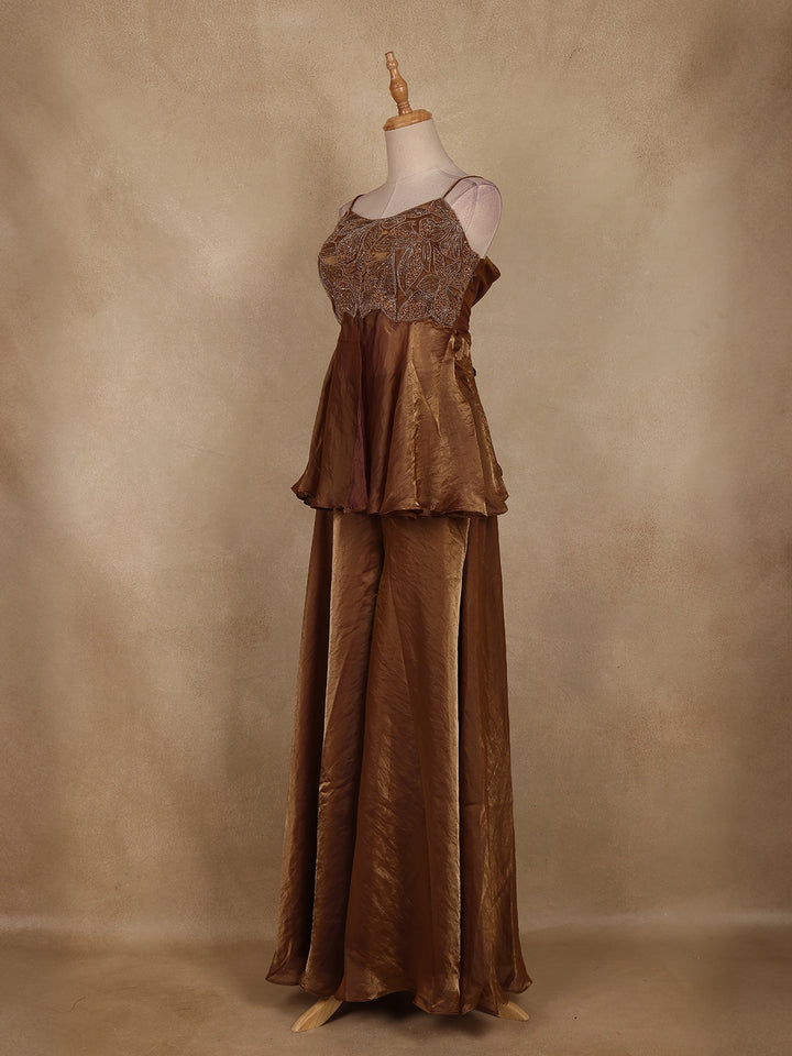 Bronze Brown Beaded Embroidered Space Silk Palazzo Suit