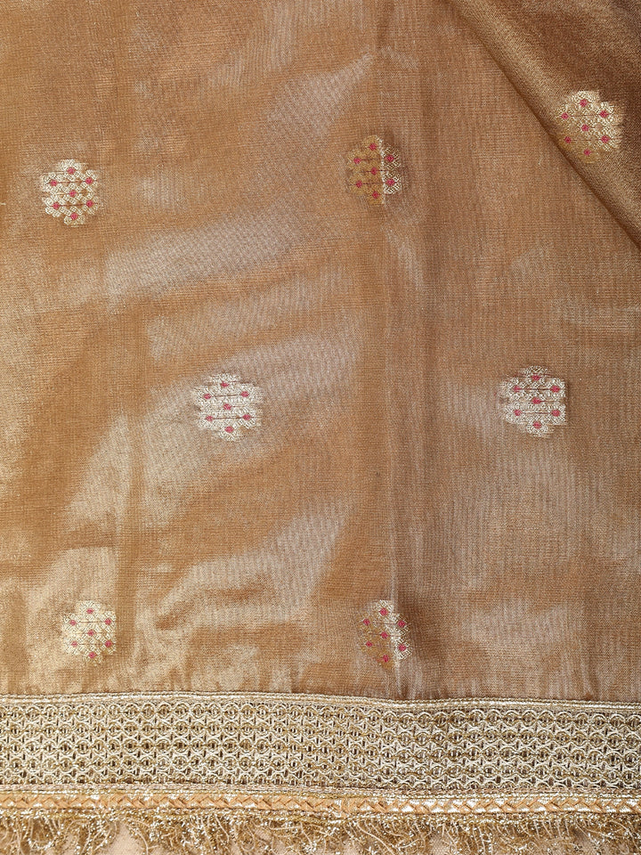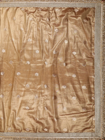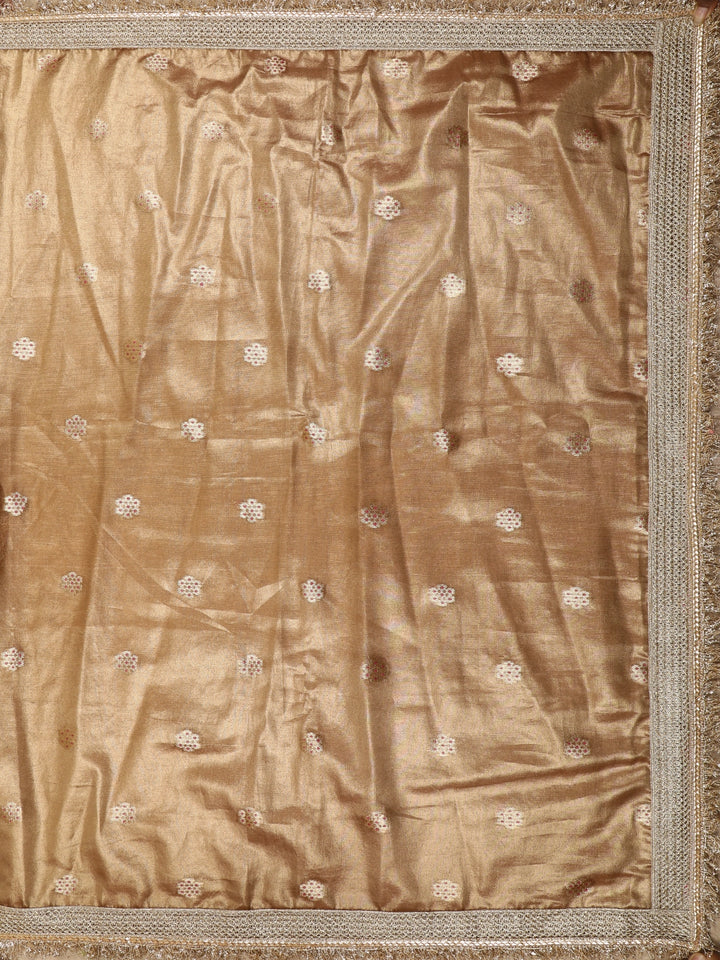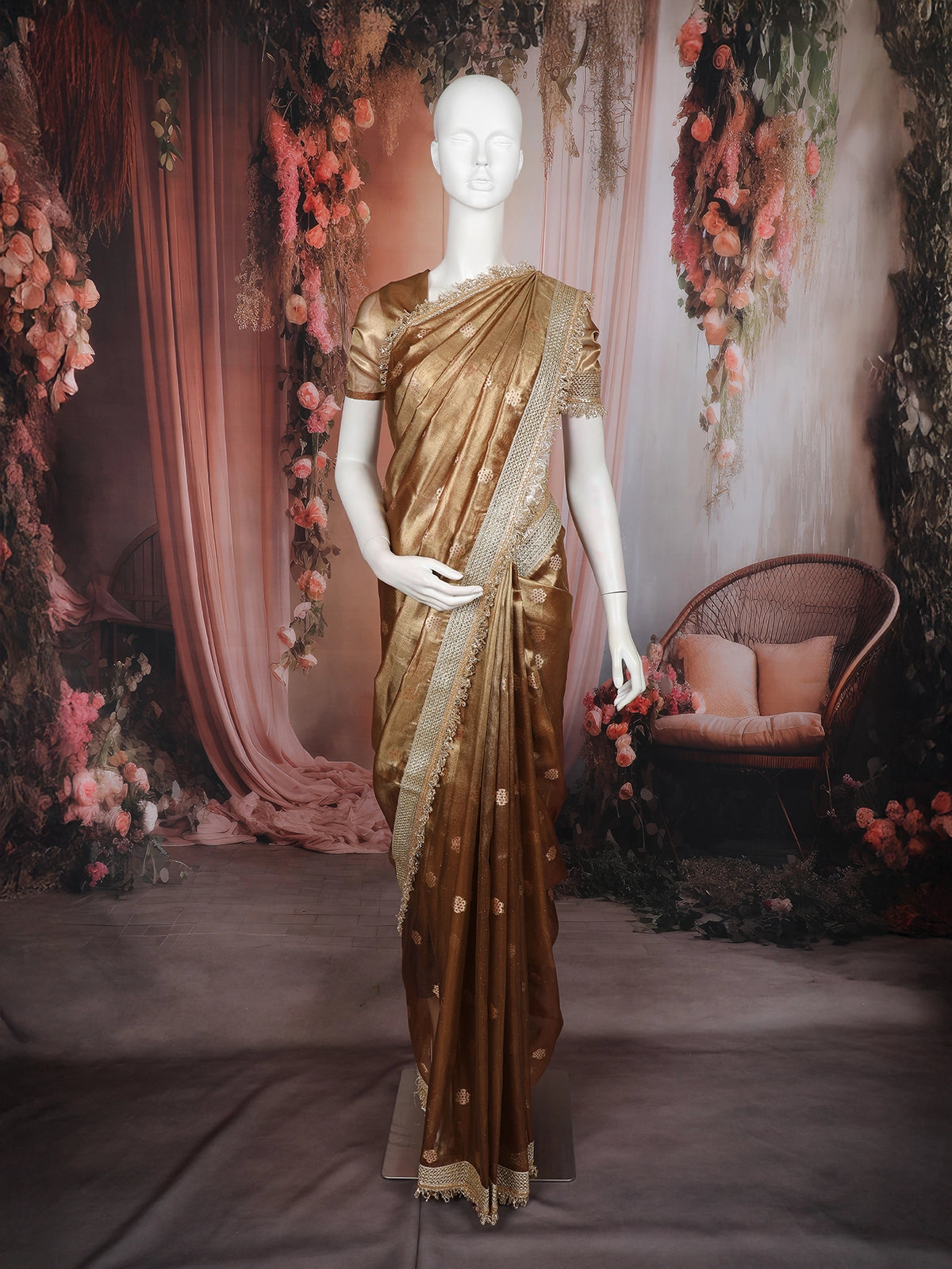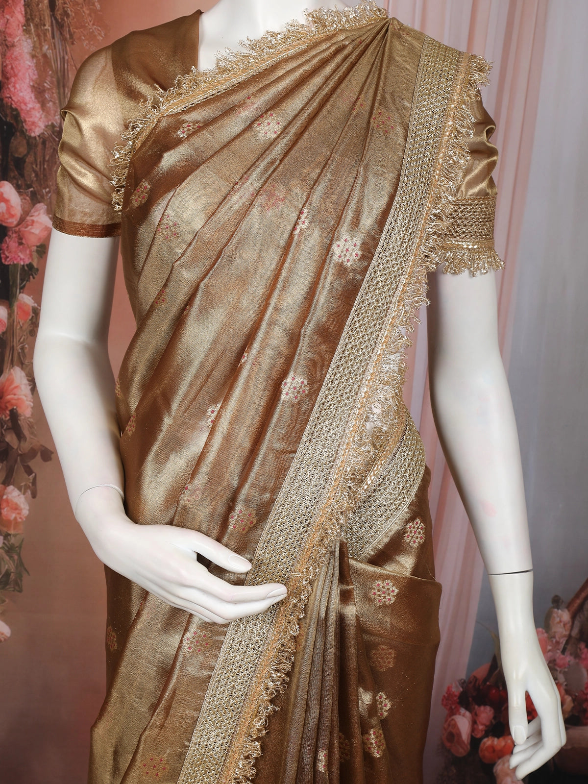 Bronze Floral Butta Design Tissue Saree with Designer Lace Border