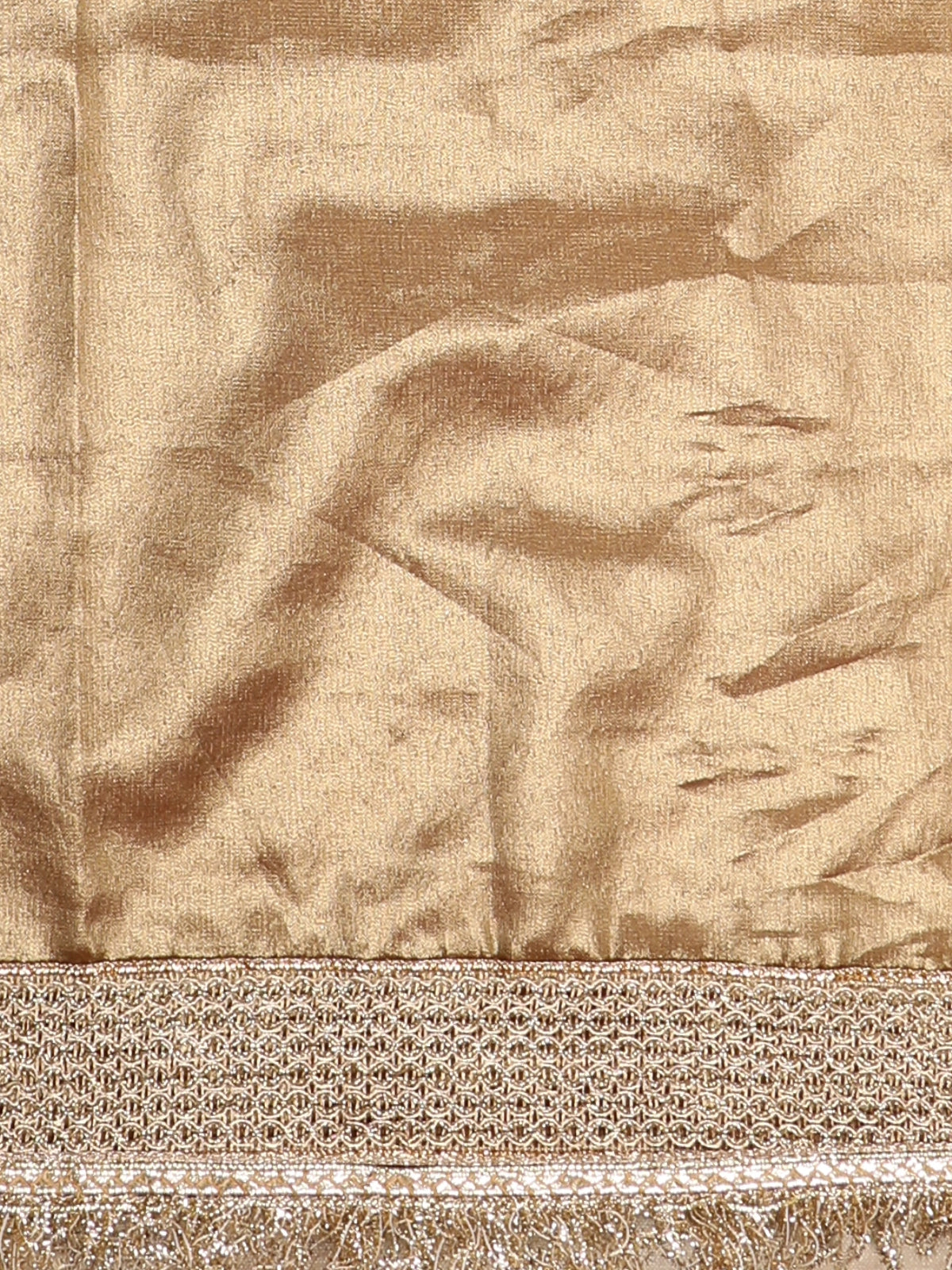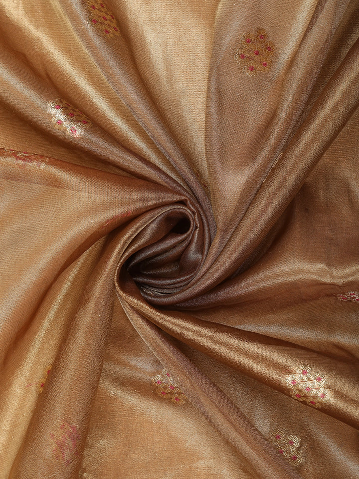 Drape yourself in shimmering luxury with this Gold Tissue Saree, gracefully adorned with delicate floral butta motifs that enhance its traditional charm. The fabric offers a glowing sheen, making it a stunning pick for weddings, receptions, and festive occasions.