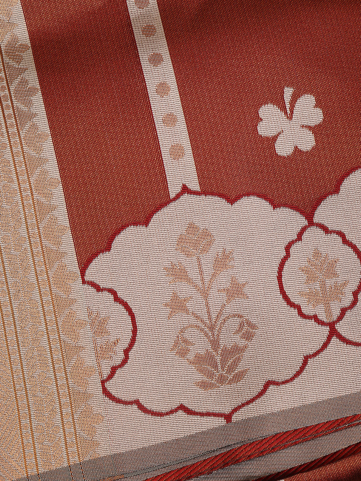 Bronze Woven Art Silk Saree with Geometric Zari Border