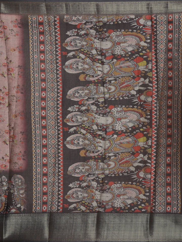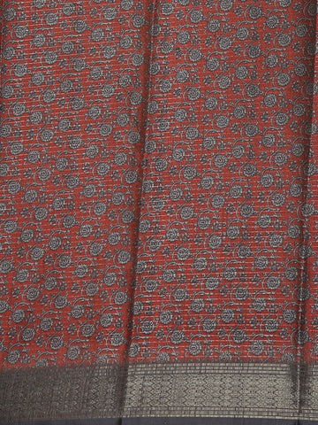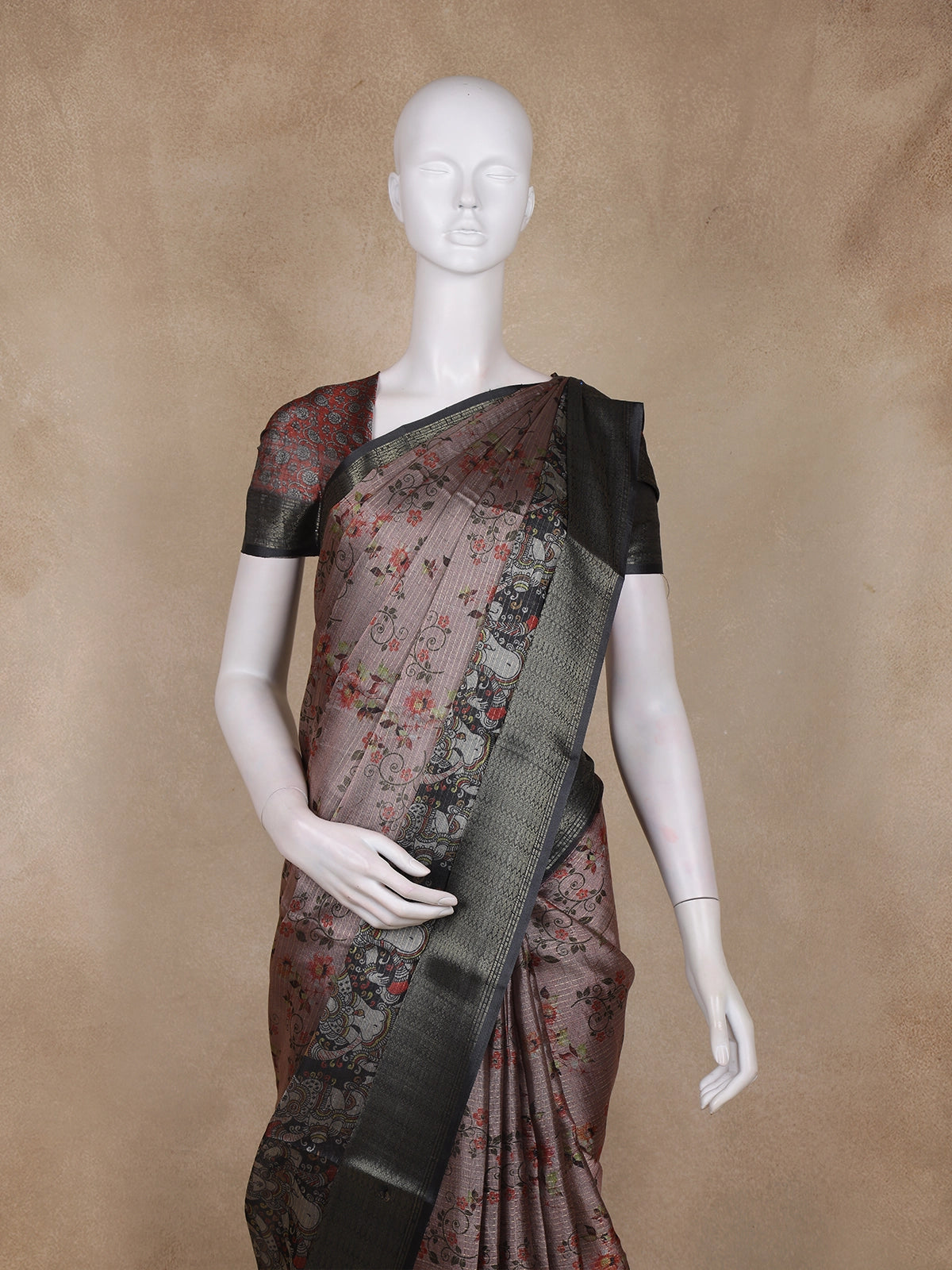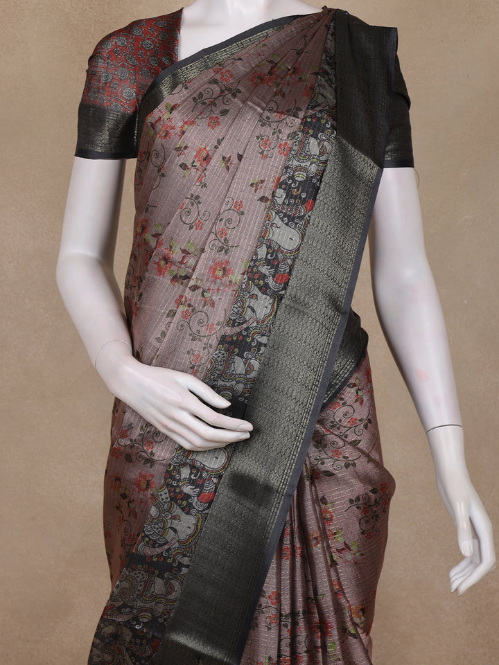 Brown and Black Floral Woven Design Mixed Cotton Fancy Saree with Zari Border