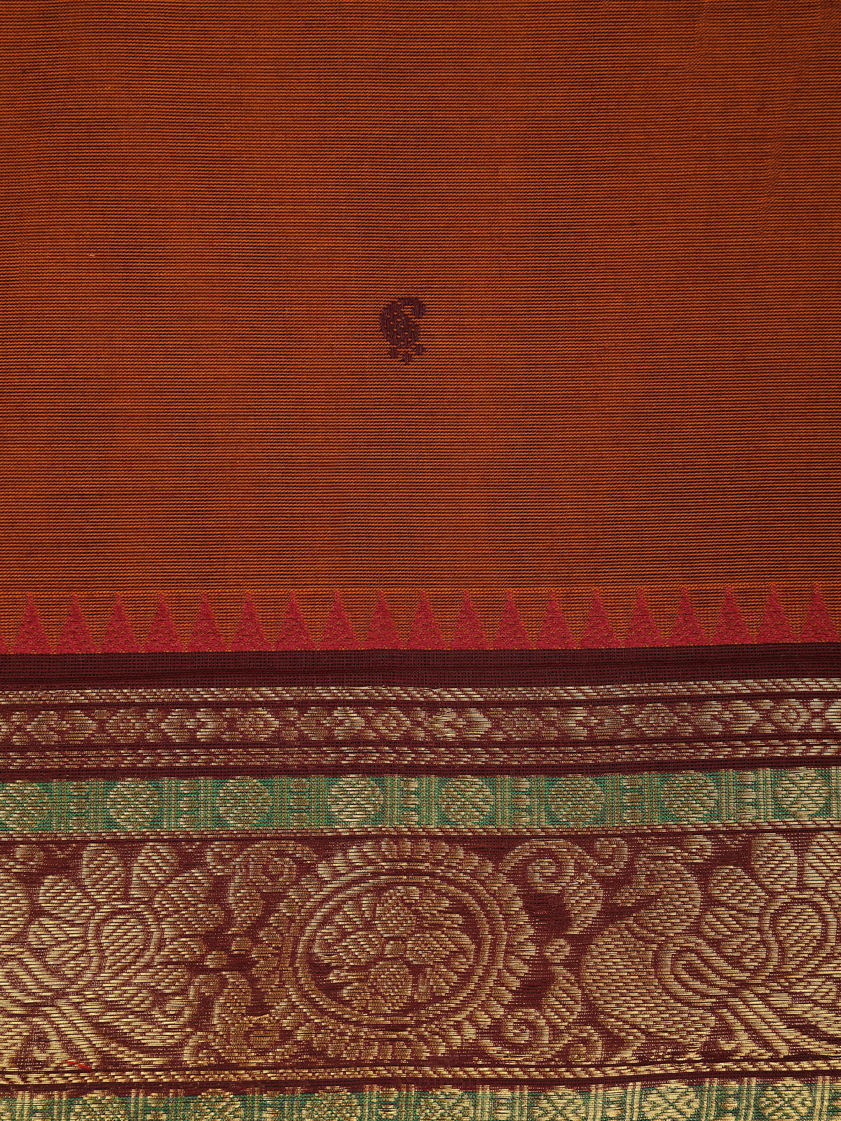 Brown Butta Woven Design Cotton Saree with Contrast Zari Border
