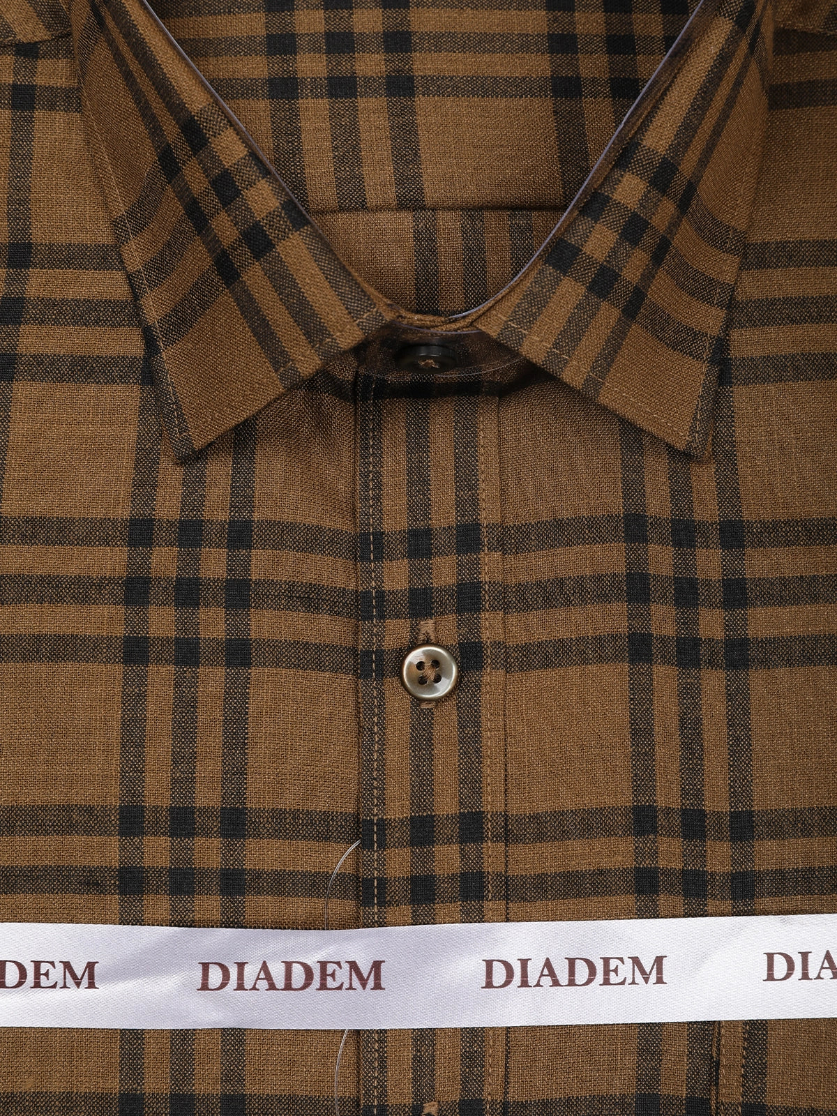 Brown Checked Design Cotton Formal Full Sleeve Men Shirt