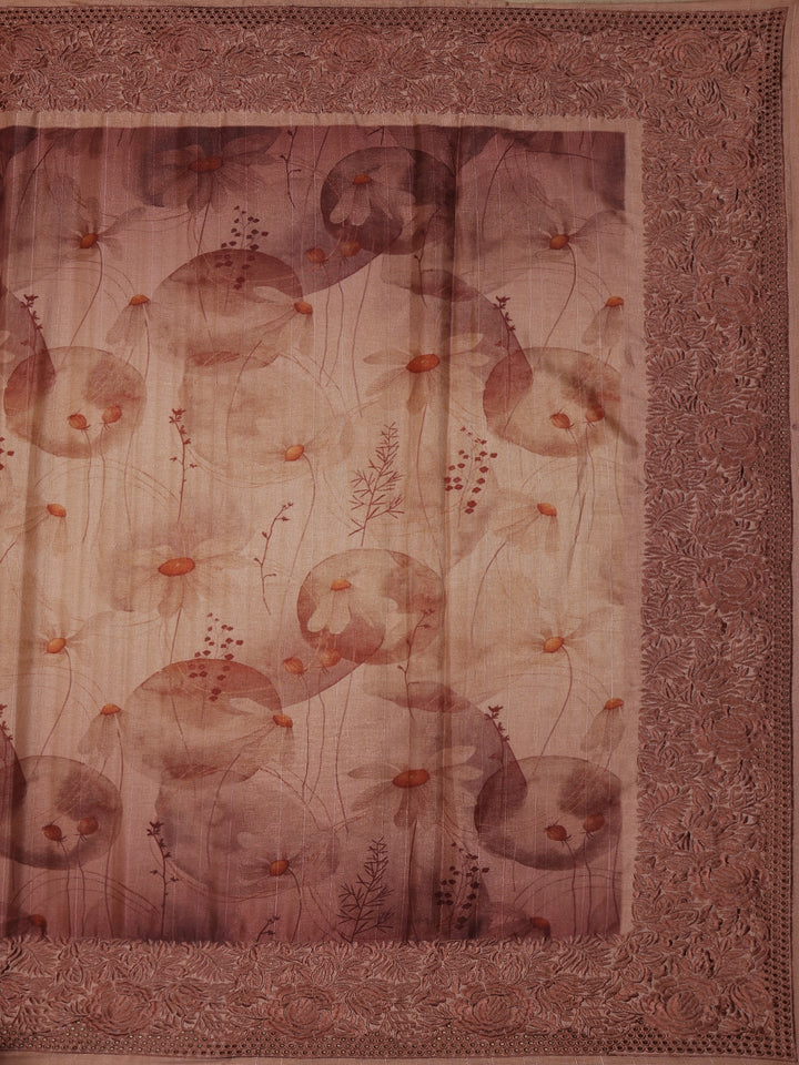 Drape yourself in refined elegance with this Brown Floral Design Semi Tussar Saree, a perfect blend of traditional artistry and modern grace. Crafted from luxurious semi tussar fabric, this saree features delicate floral printed motifs that lend it an understated charm, ideal for festive gatherings and special occasions.