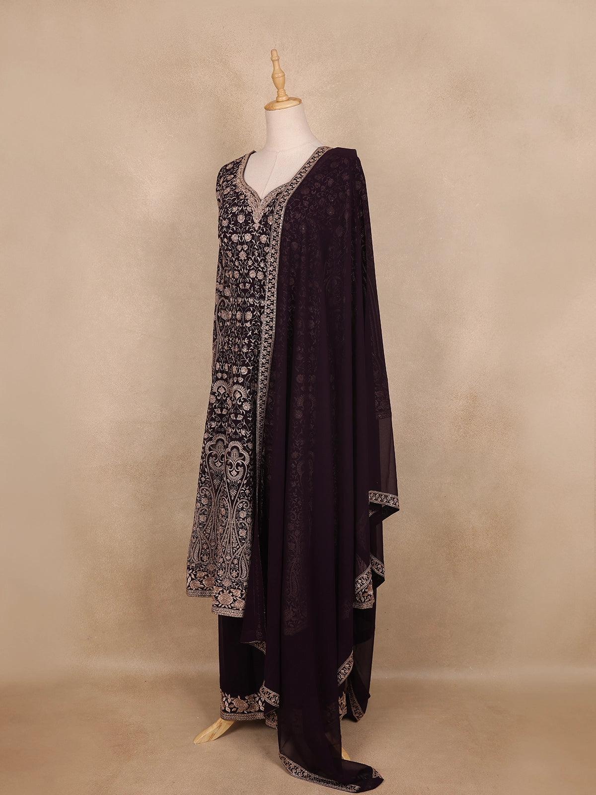 Paired with a matching dupatta, this palazzo suit is ideal for festive gatherings, family celebrations, or evening functions — exuding charm, sophistication, and timeless beauty.