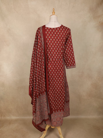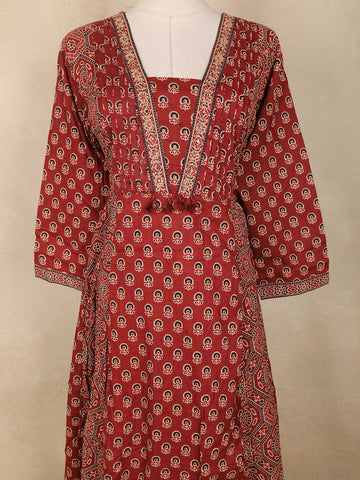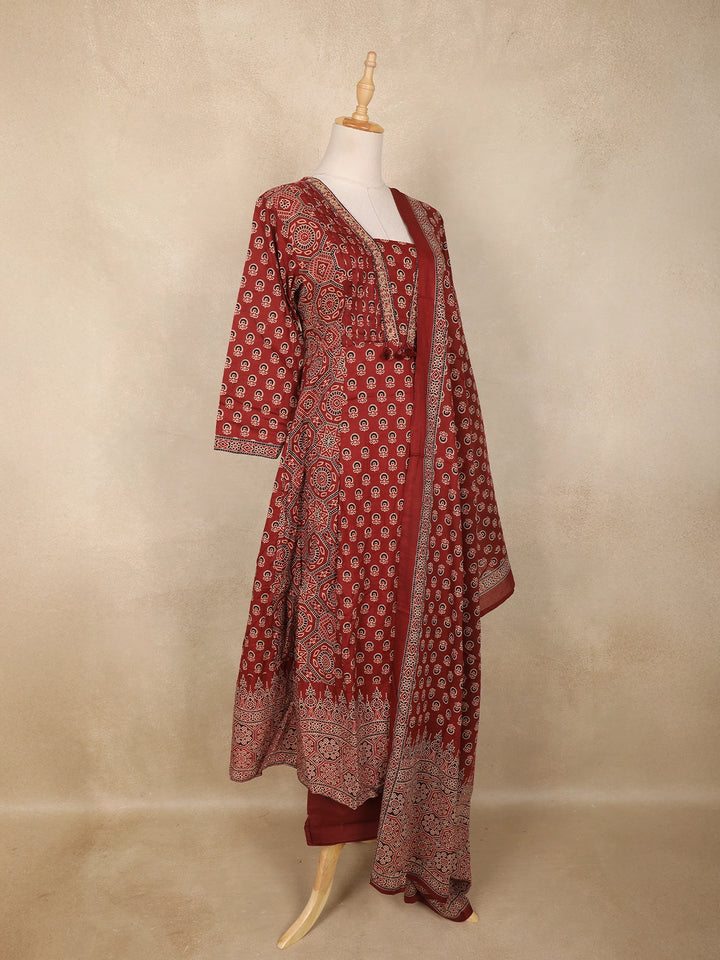Brown Paisley Printed Design Anarkali Cotton Salwar Suit