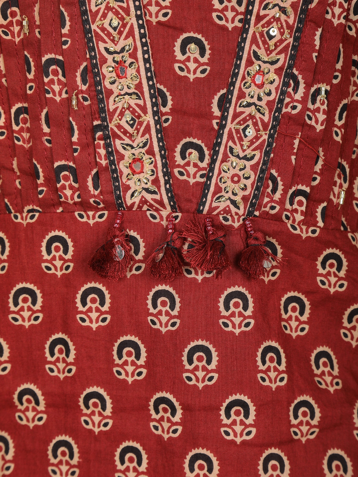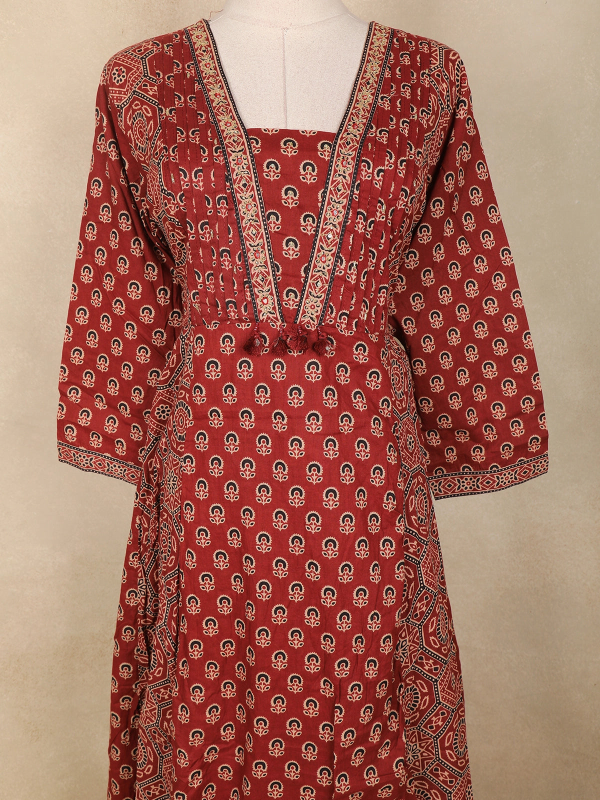 The 3/4th sleeves also carry matching prints and border detailing, ensuring a cohesive and polished look.
