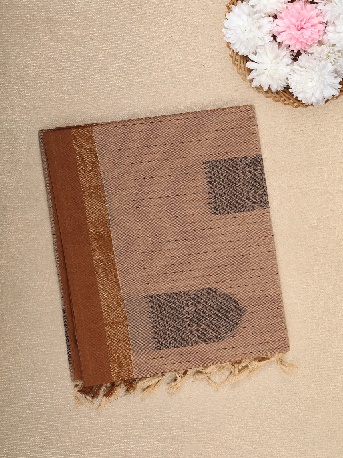 Brown Stripes Design Cotton Saree with Contrast Zari Border