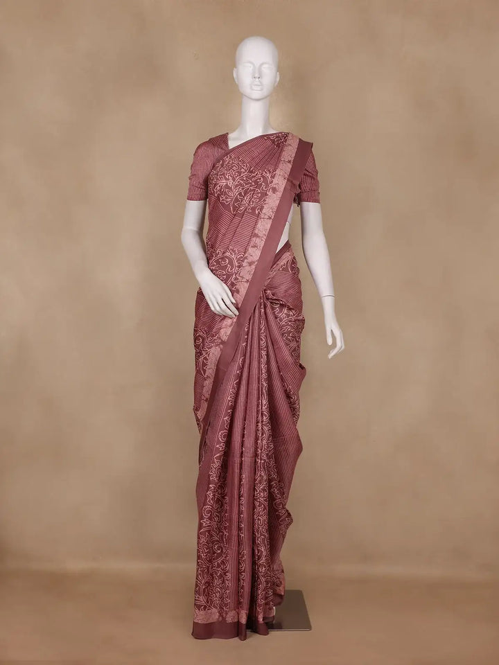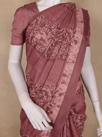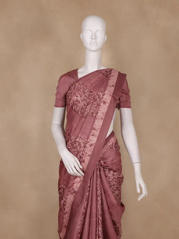 Brownish Maroon Striped Design Semi Tussar Saree