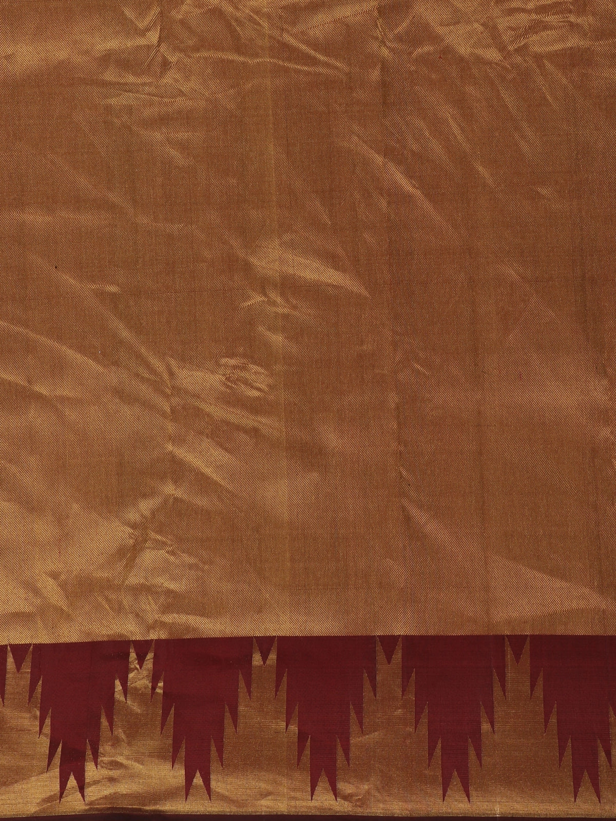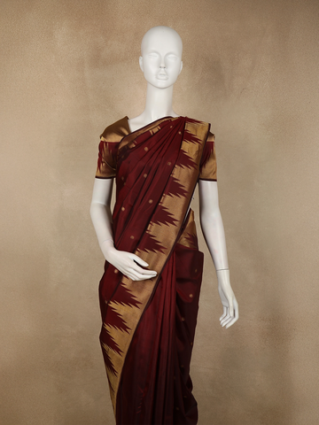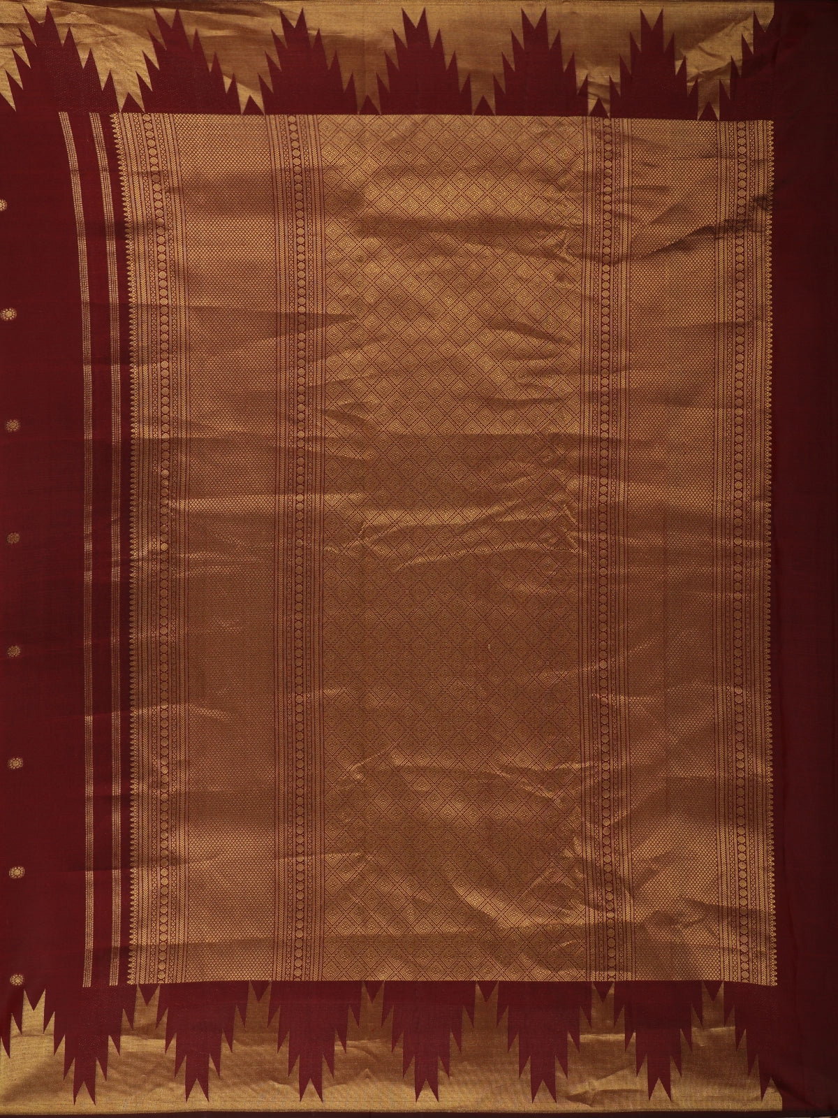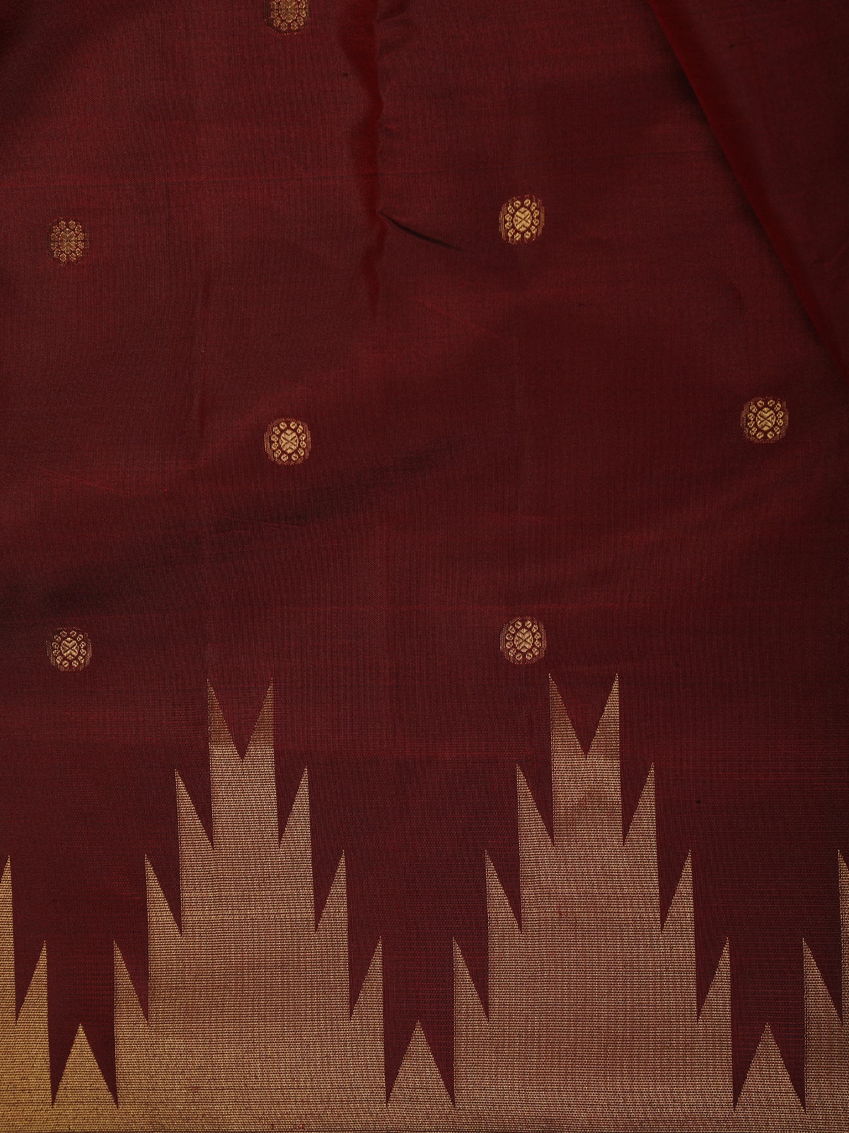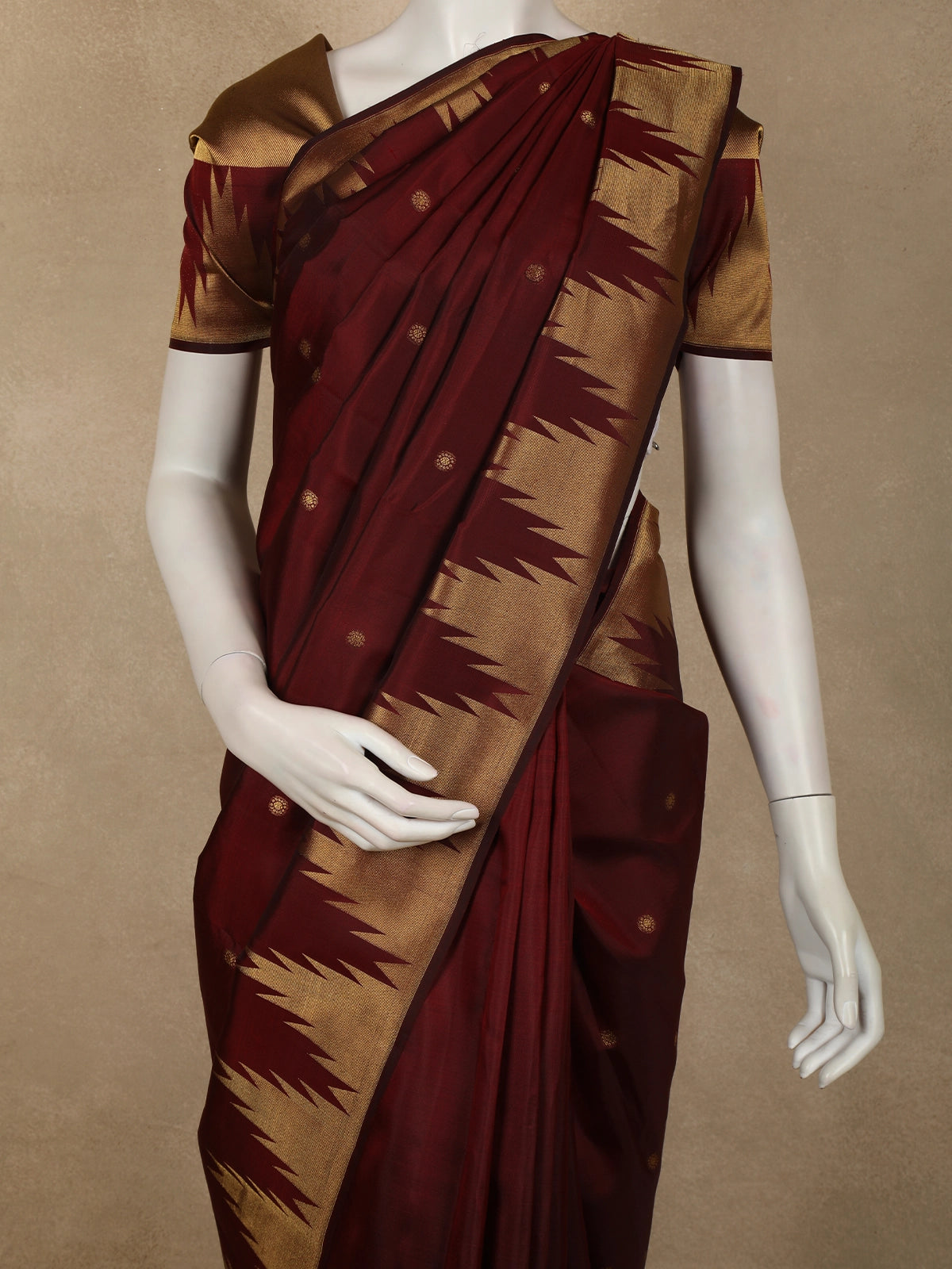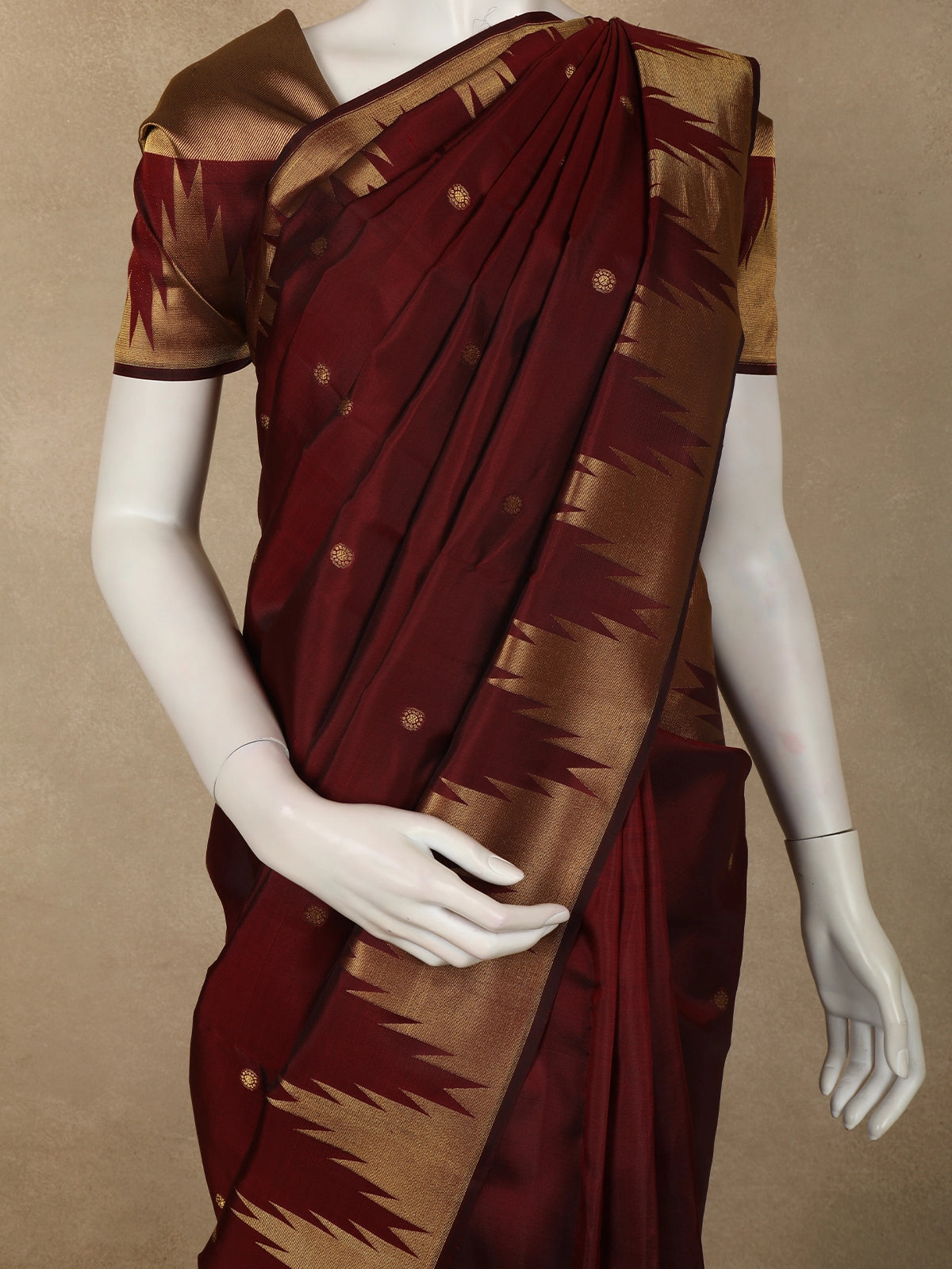 Burgundy Butta Woven Design Pure Kanchipuram Silk Saree with Temple Zari Border