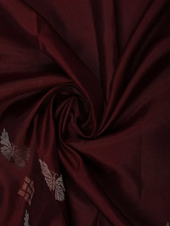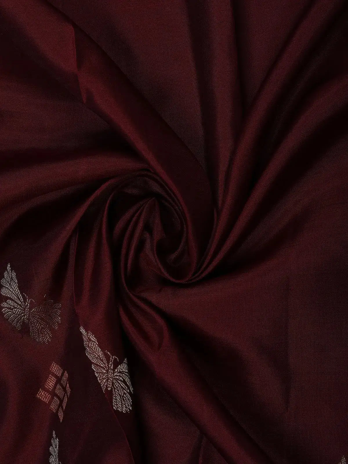 Burgundy Butterfly Motif Woven Pure Kanchipuram Silk Saree