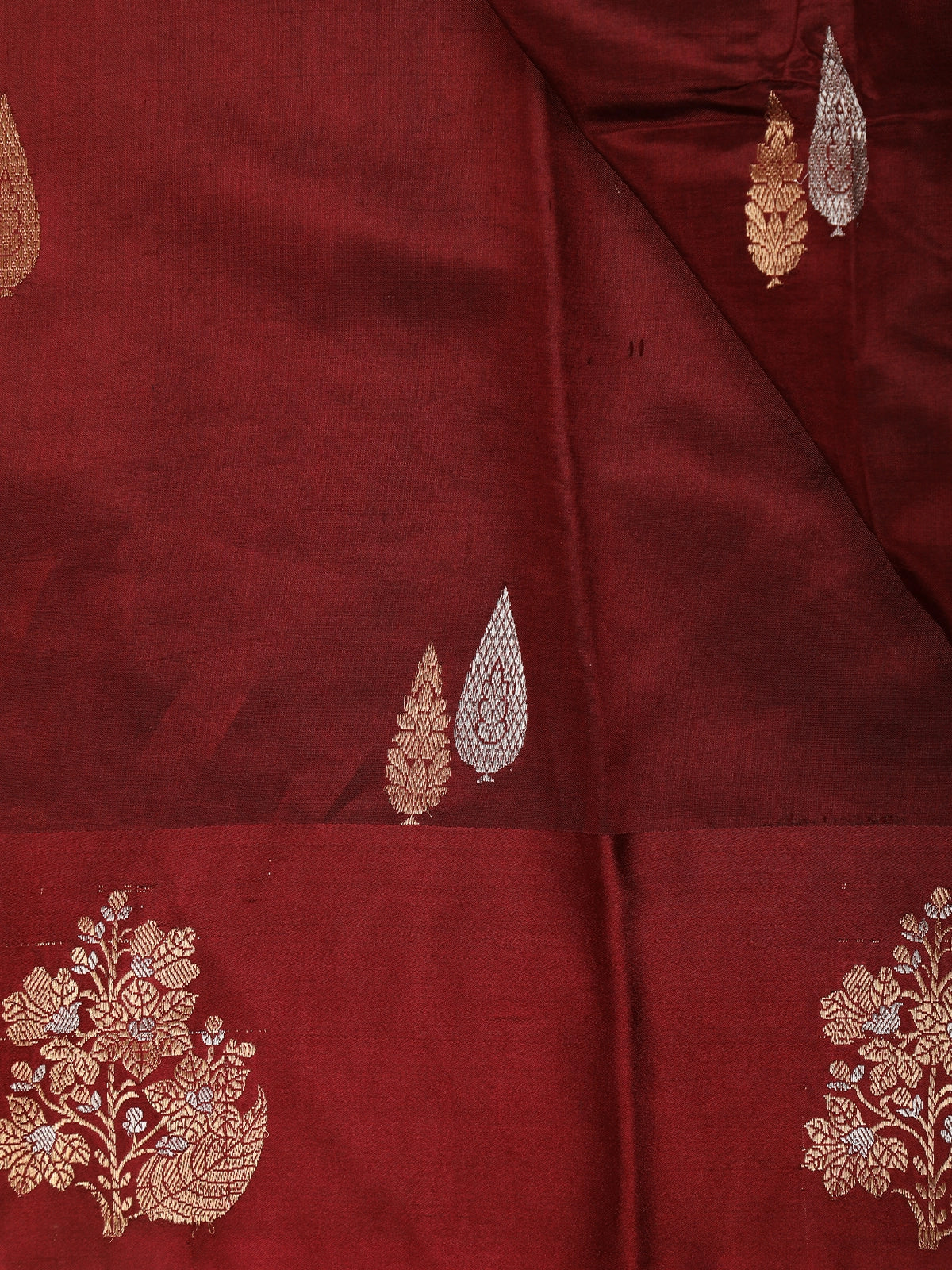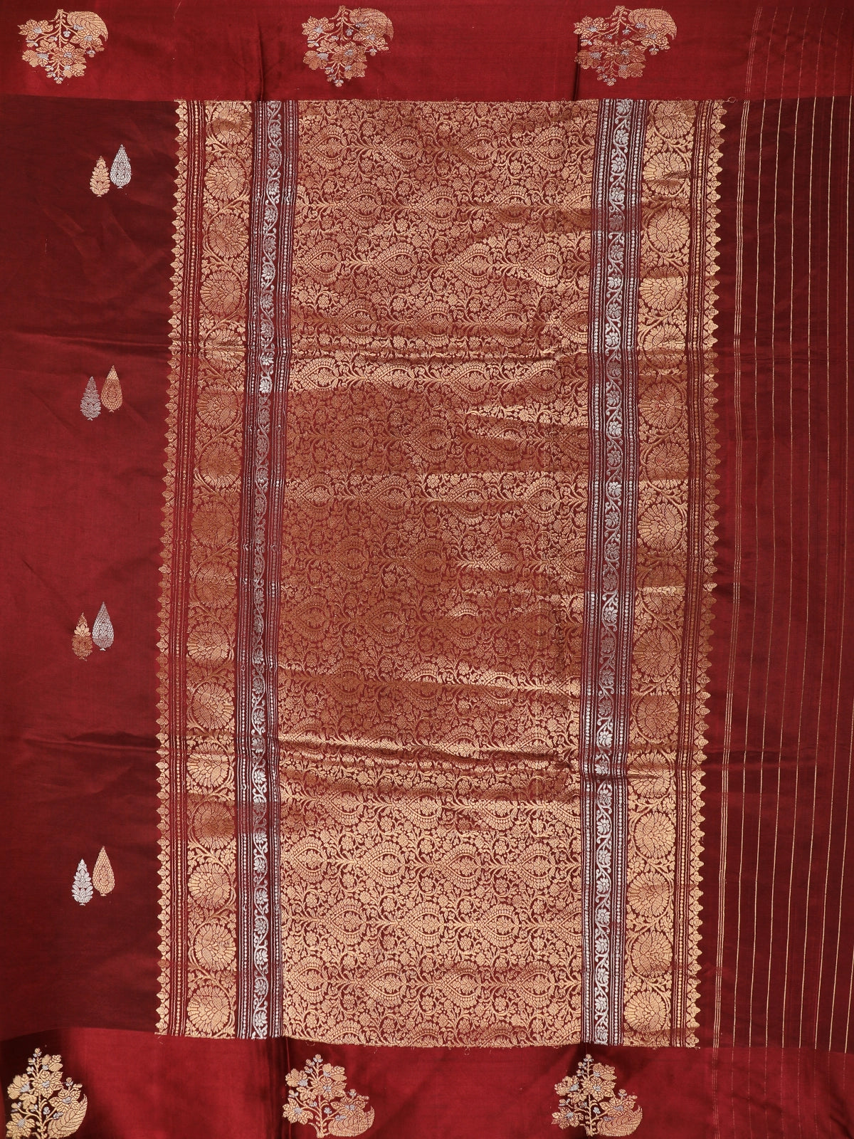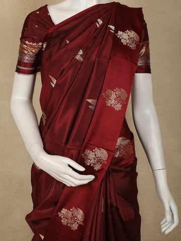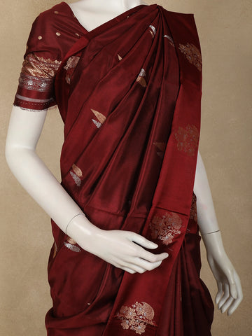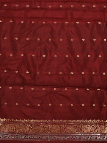 Burgundy Floral Butta Zari Woven Design Pure Banarasi Silk Saree with Designer Border