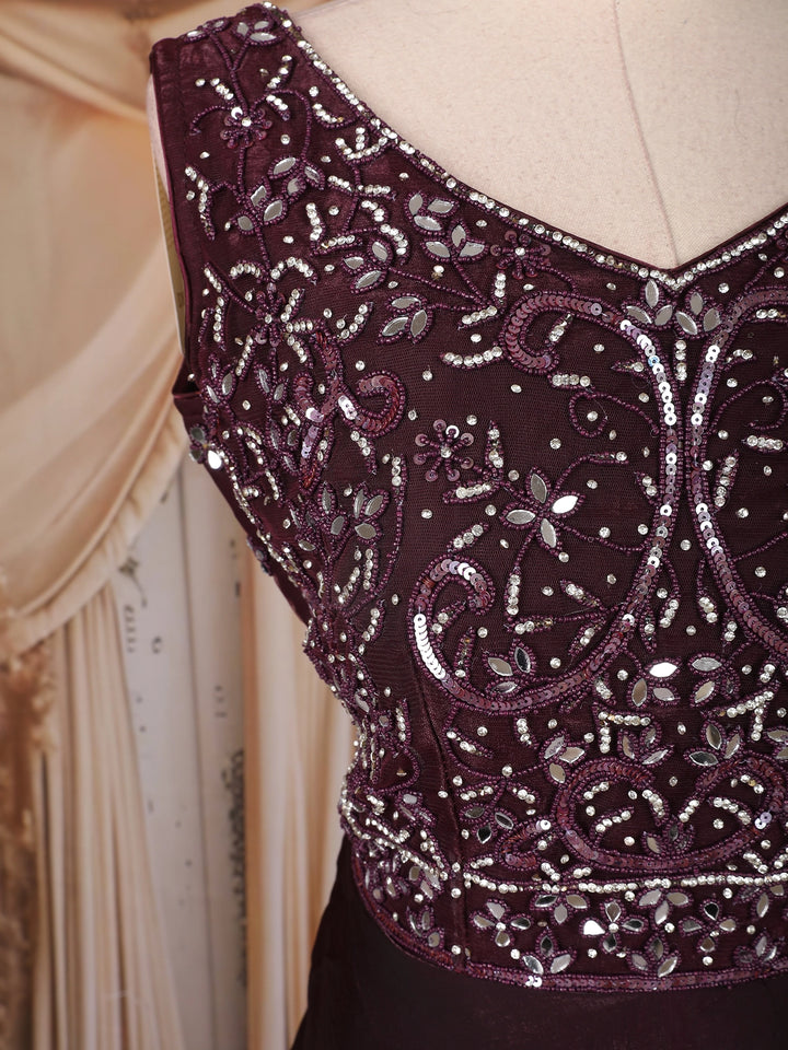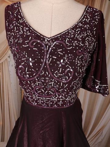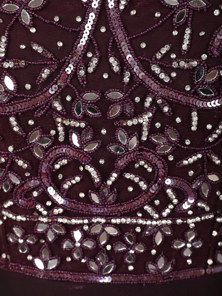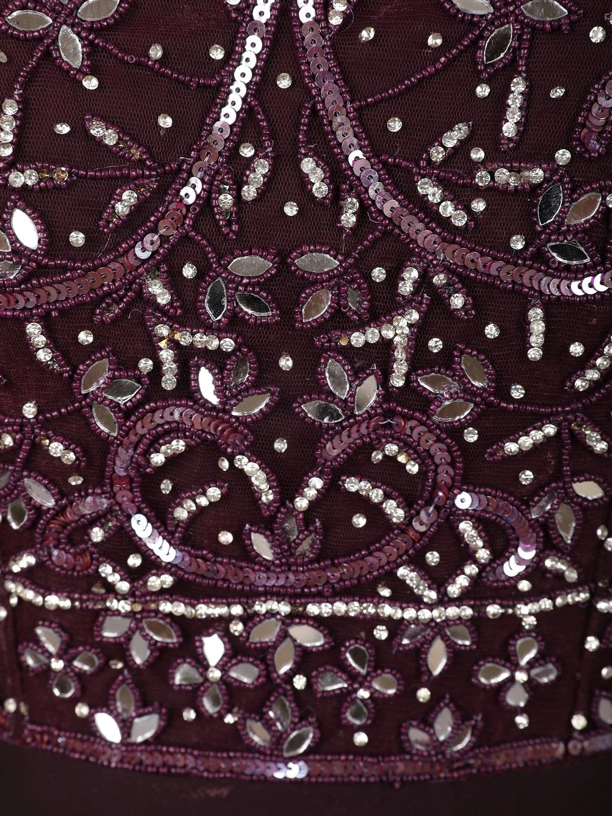 Burgundy Heavy Sequins & Thread Embroidered Design Satin Bridesmaids Gown