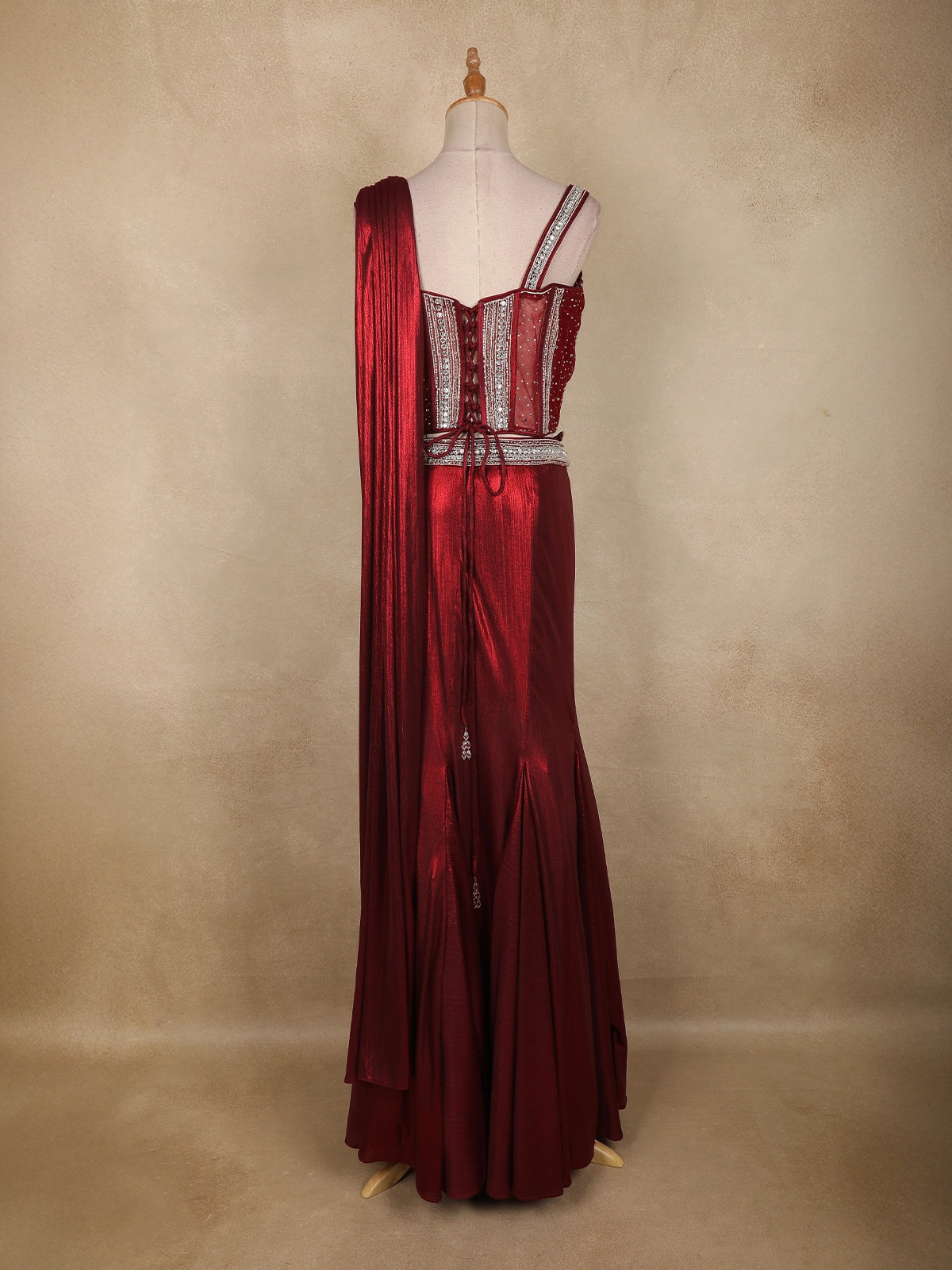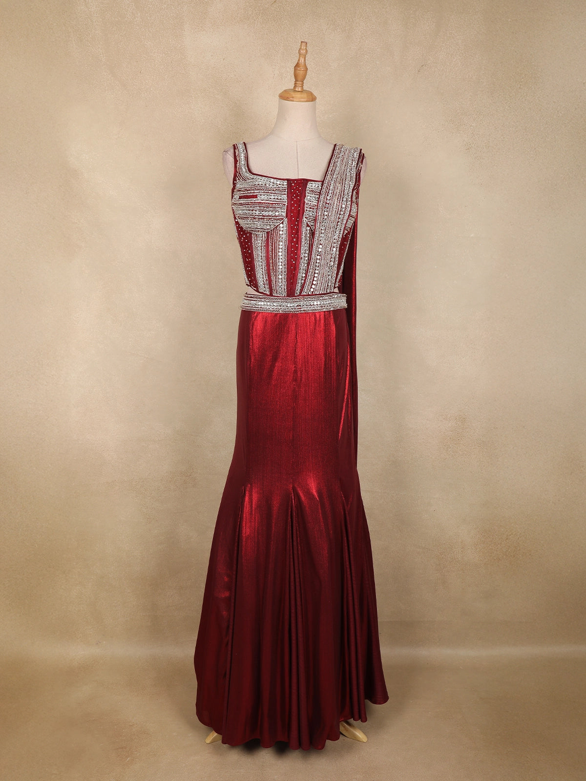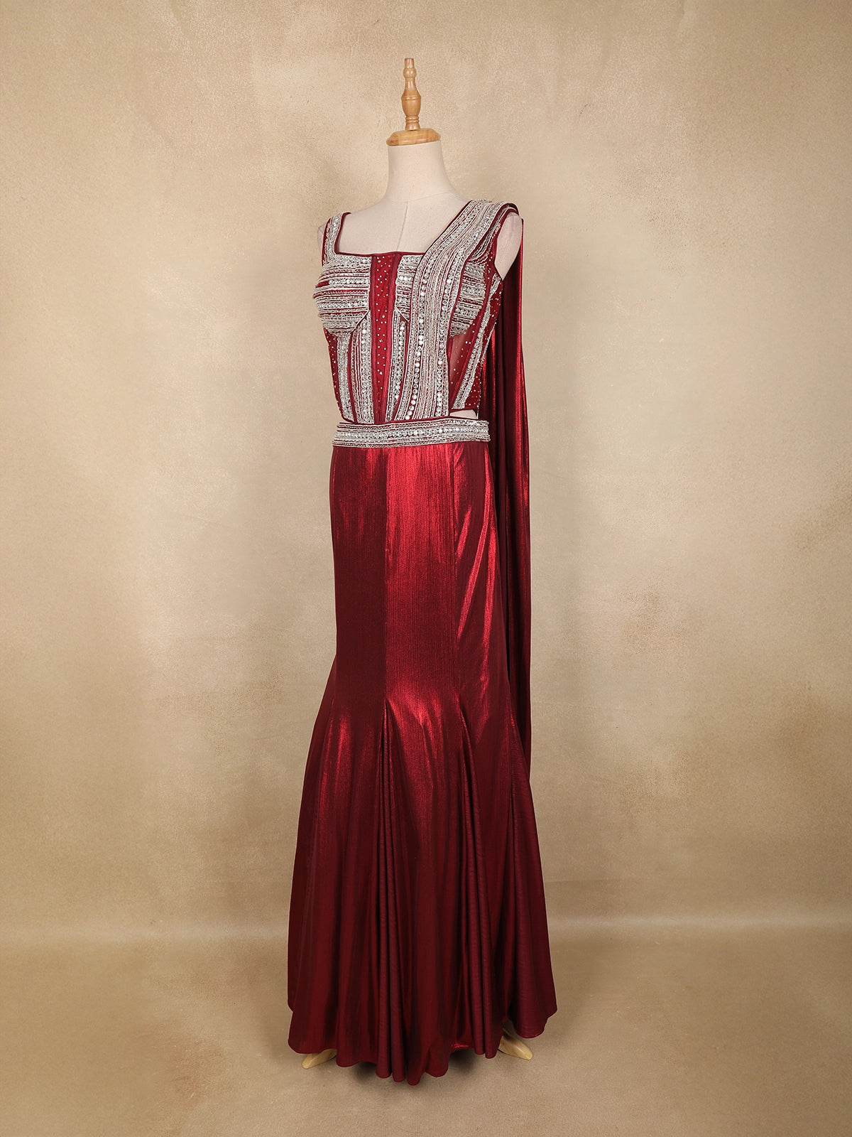 Burgundy Sequins Embroidered Mermaid Iridescent Fabric Lehenga