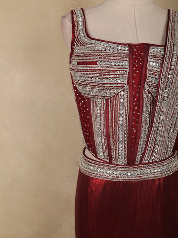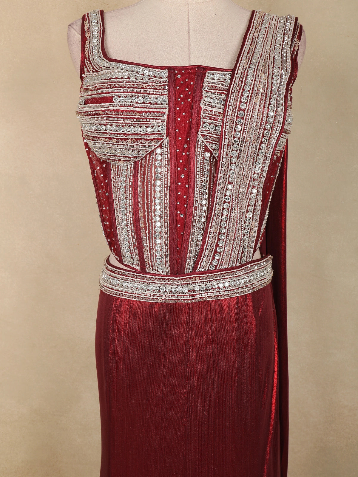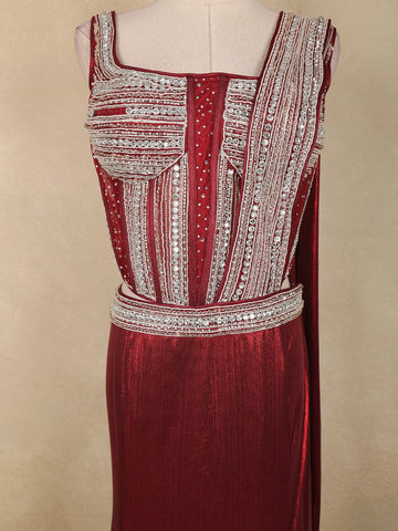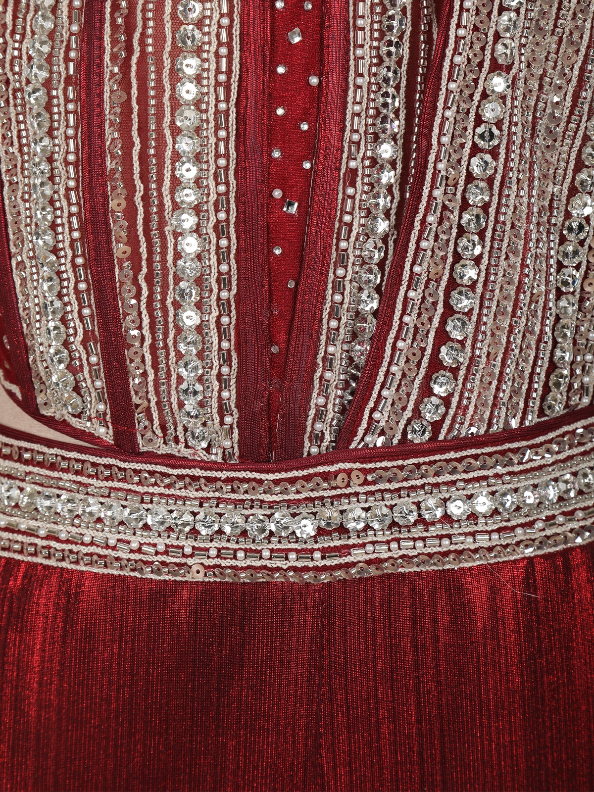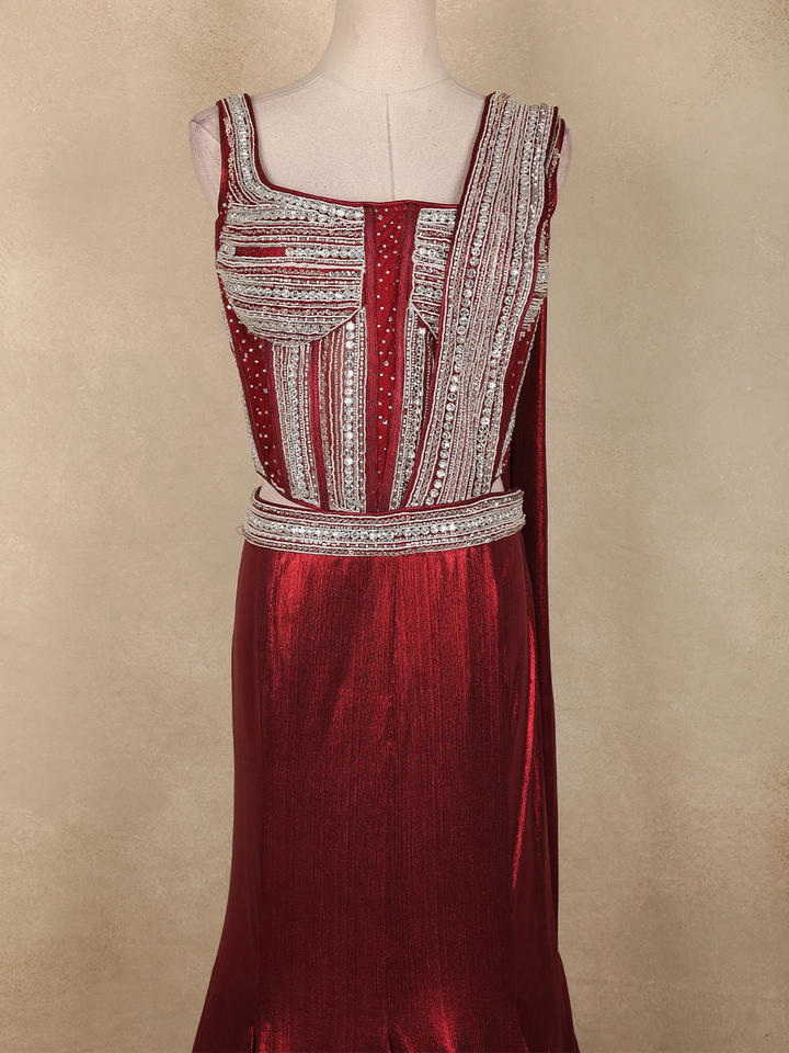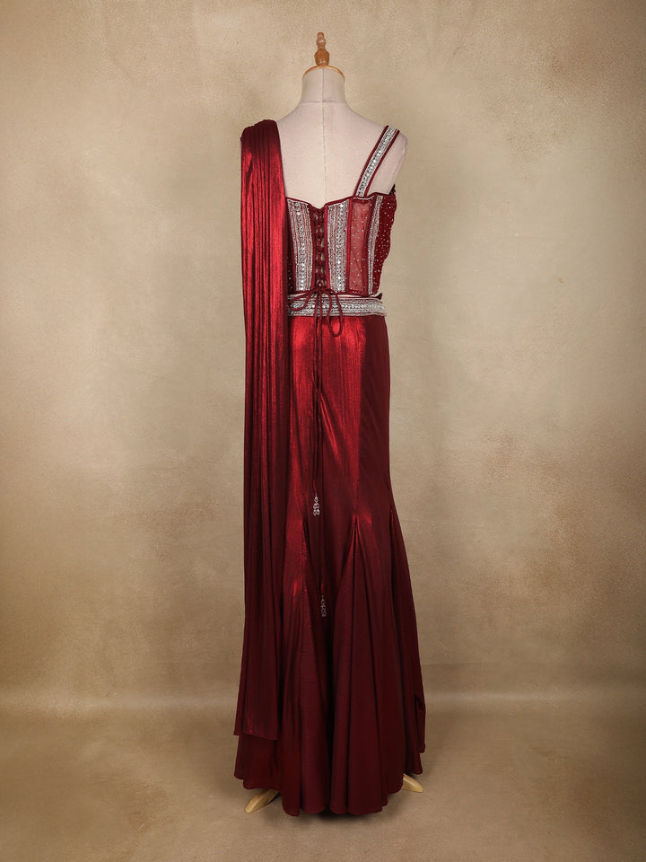 Burgundy Sequins Embroidered Mermaid Iridescent Fabric Lehenga