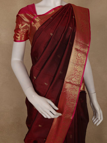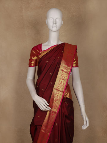 Burgundy Small Butta Woven Pure Kanchipuram Silk Saree