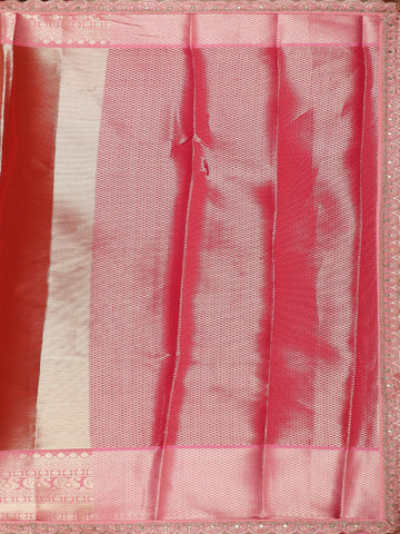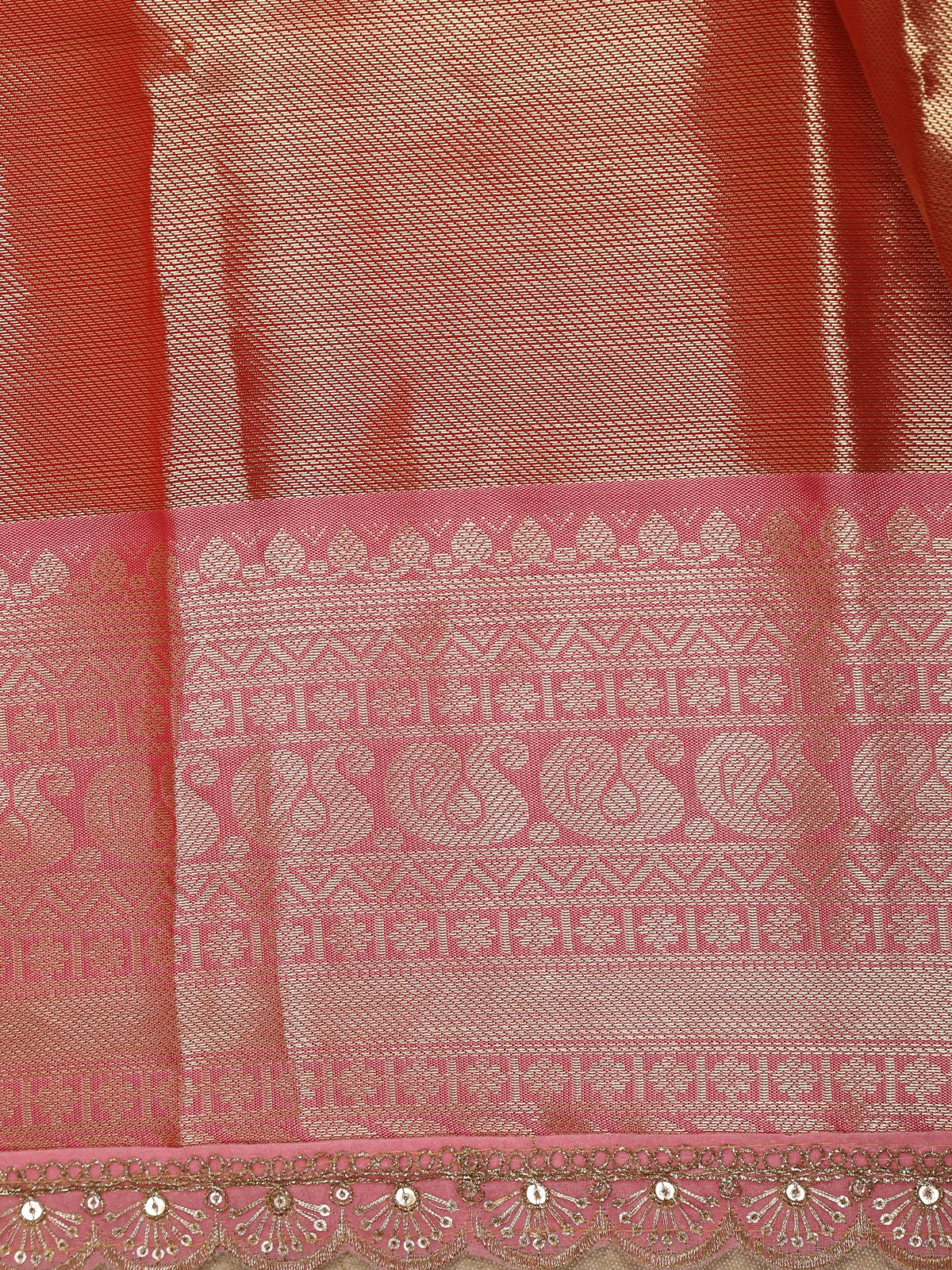 Burnt Copper Orange Zari Woven Design Tissue Silk Saree with Designer Border